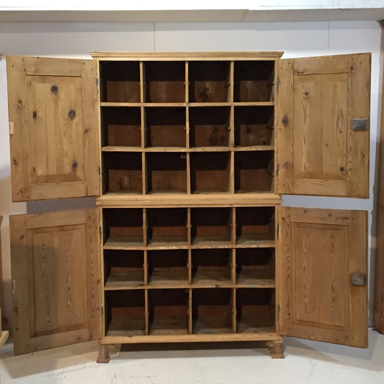 Large Pine Post Office Cupboard (Ideal Clothes Organiser) c.1900
