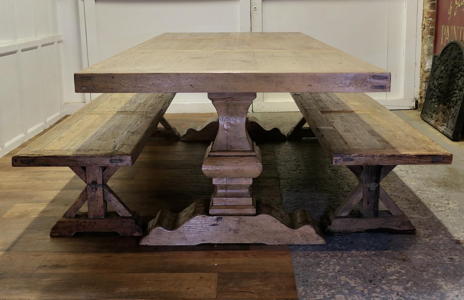 Large Pine Refectory Table with Matching Benches