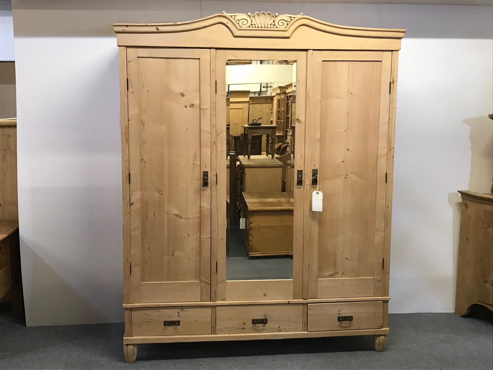 Large Pine Triple Door Wardrobe c.1925