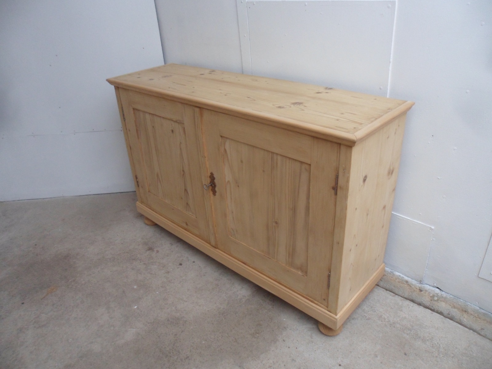 Large Plain Antique Pine 2 Door TV Stand / Dresser Base to Wax / Paint