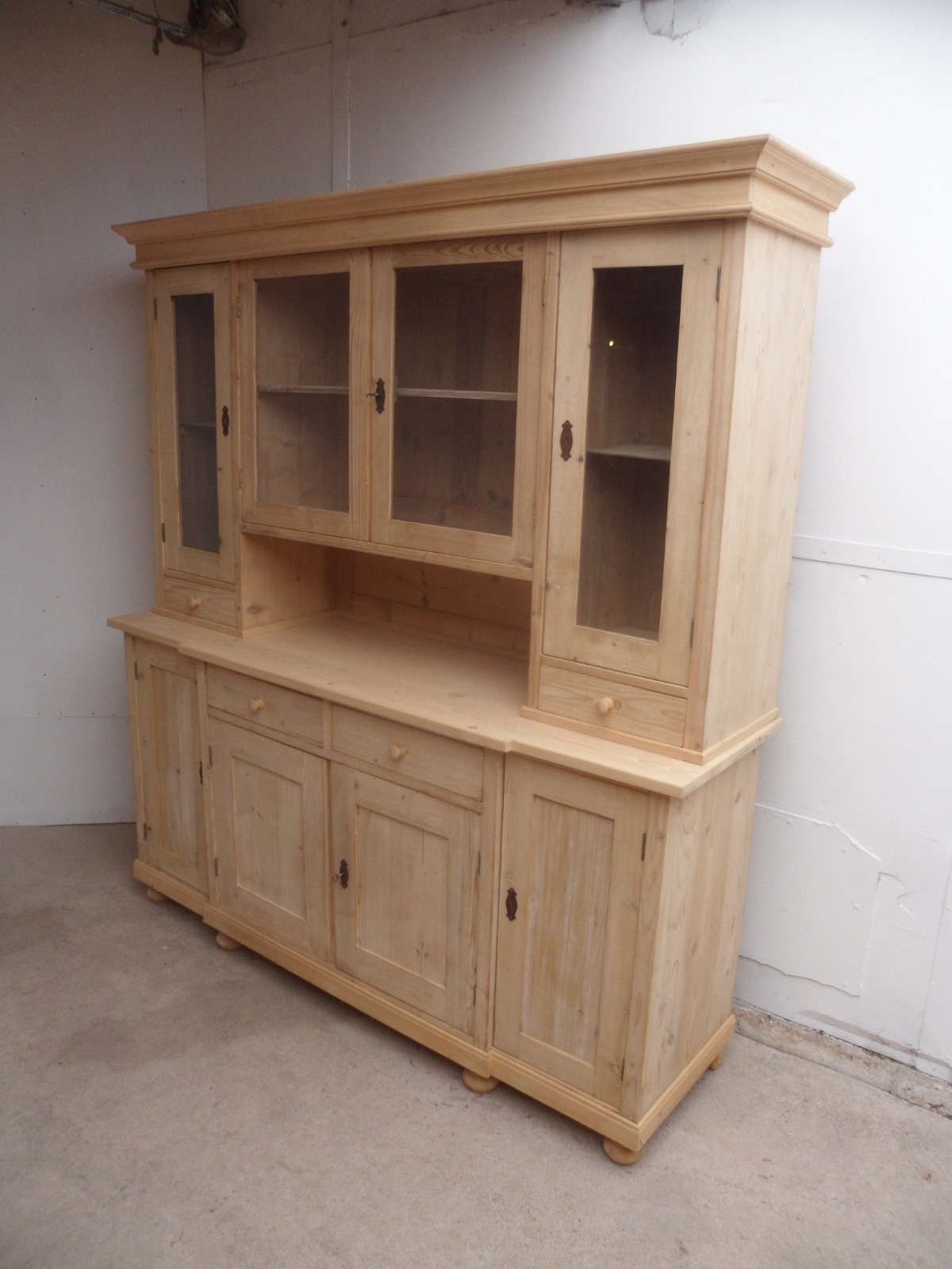 Large Plain Antique Pine 4 Door Kitchen Dresser to paint / wax