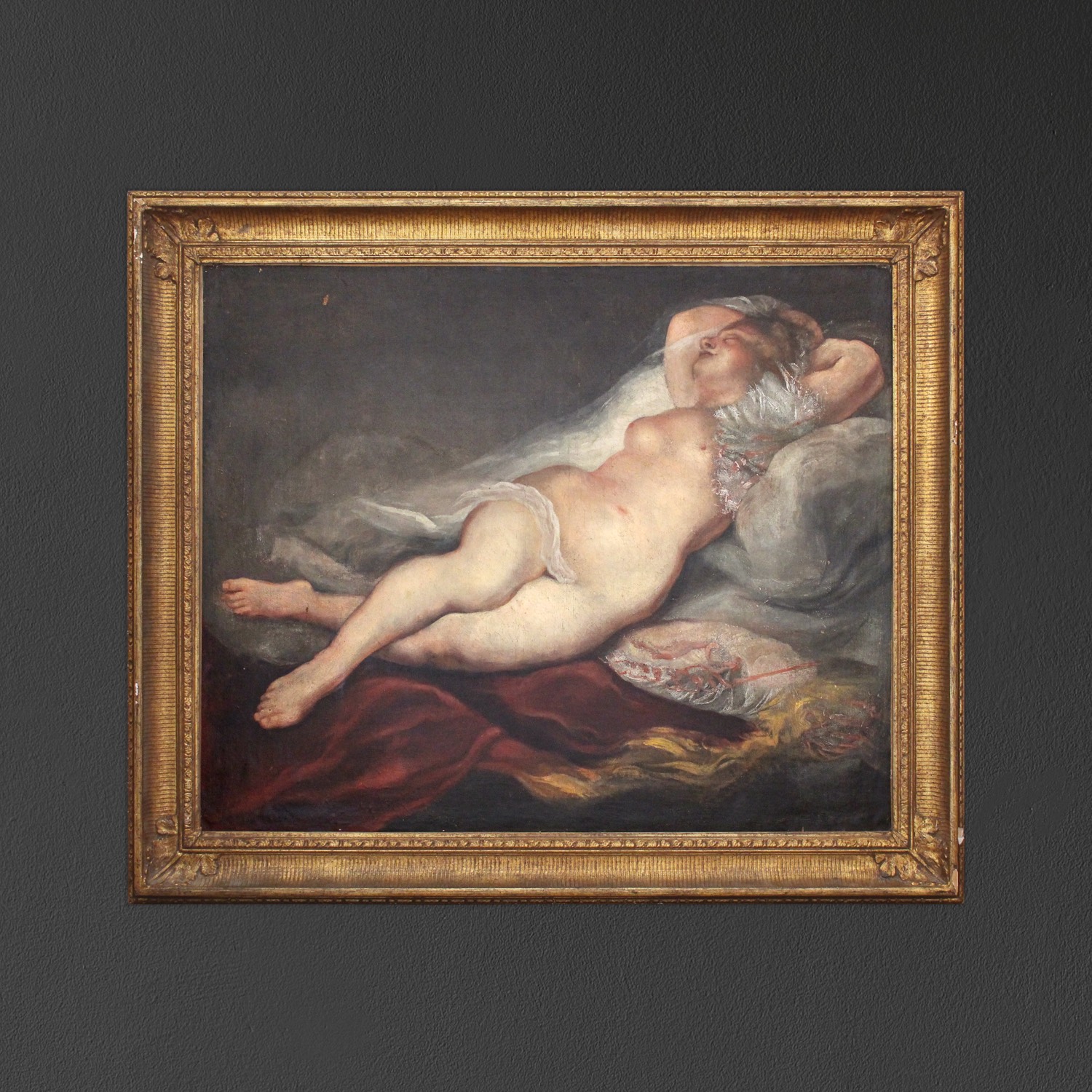 Large Portrait of a Reclining Nude, Original French Antique Oil Painting, Early 19th Century