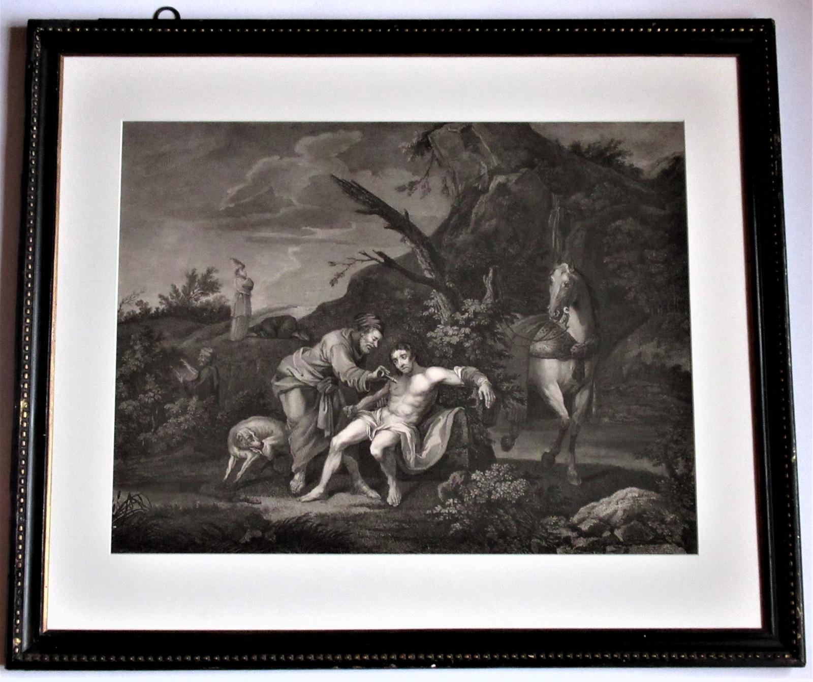 Large print after William Hogarth, The Good Samaritan, engraved 1772, period frame