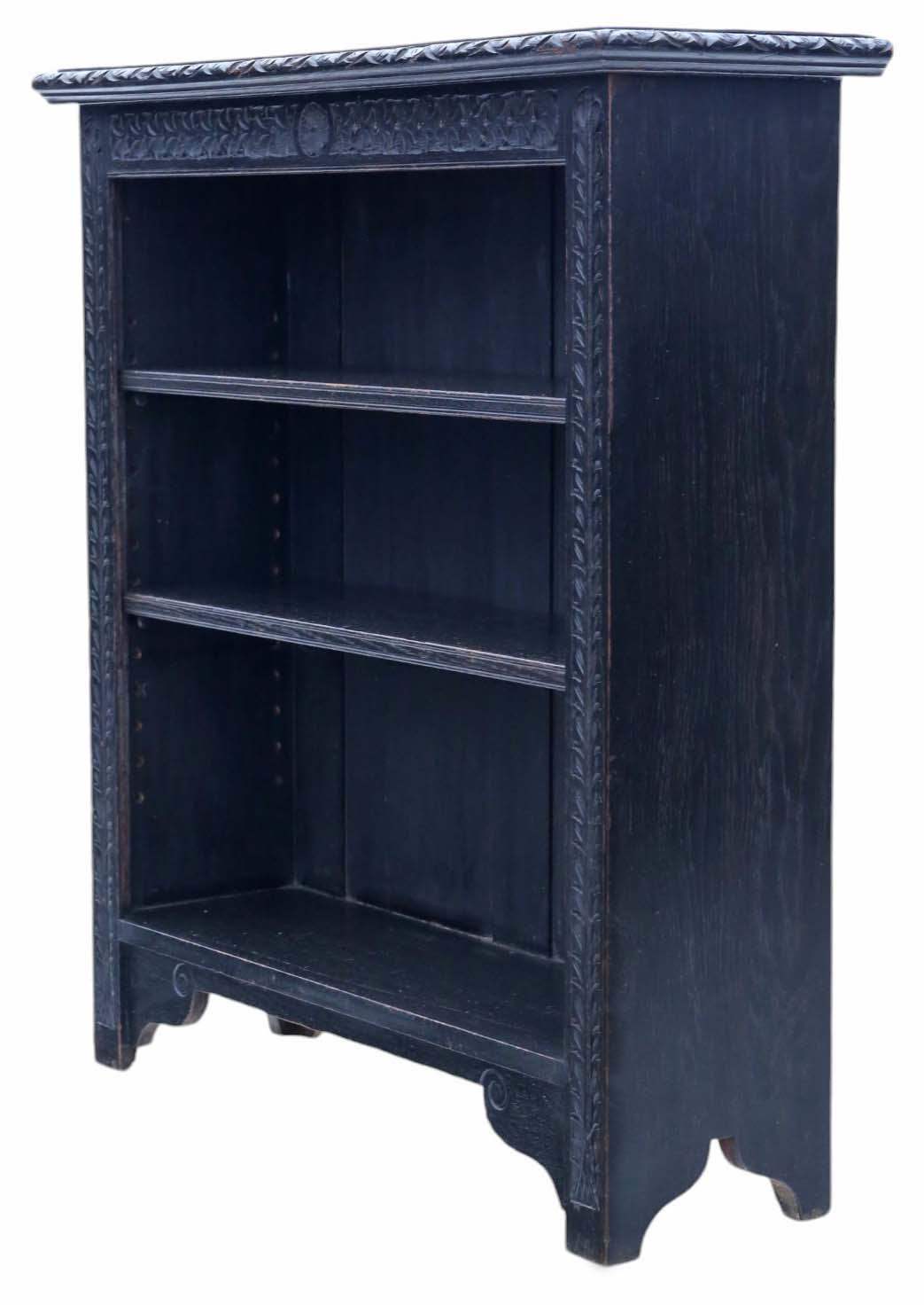Large Quality Antique Gothic Ebonised Oak Adjustable Bookcase c.1900 (1 of 8)
