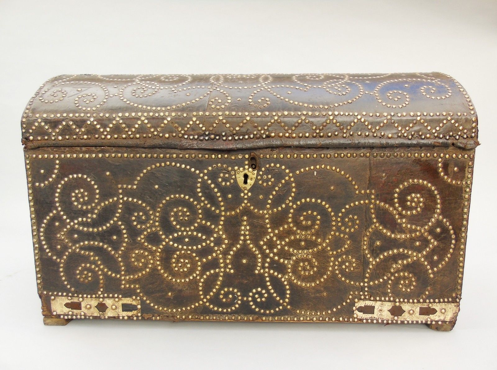 Large Queen Anne Period Studded Leather Dome Top Trunk, Early 18th Century (1 of 1)