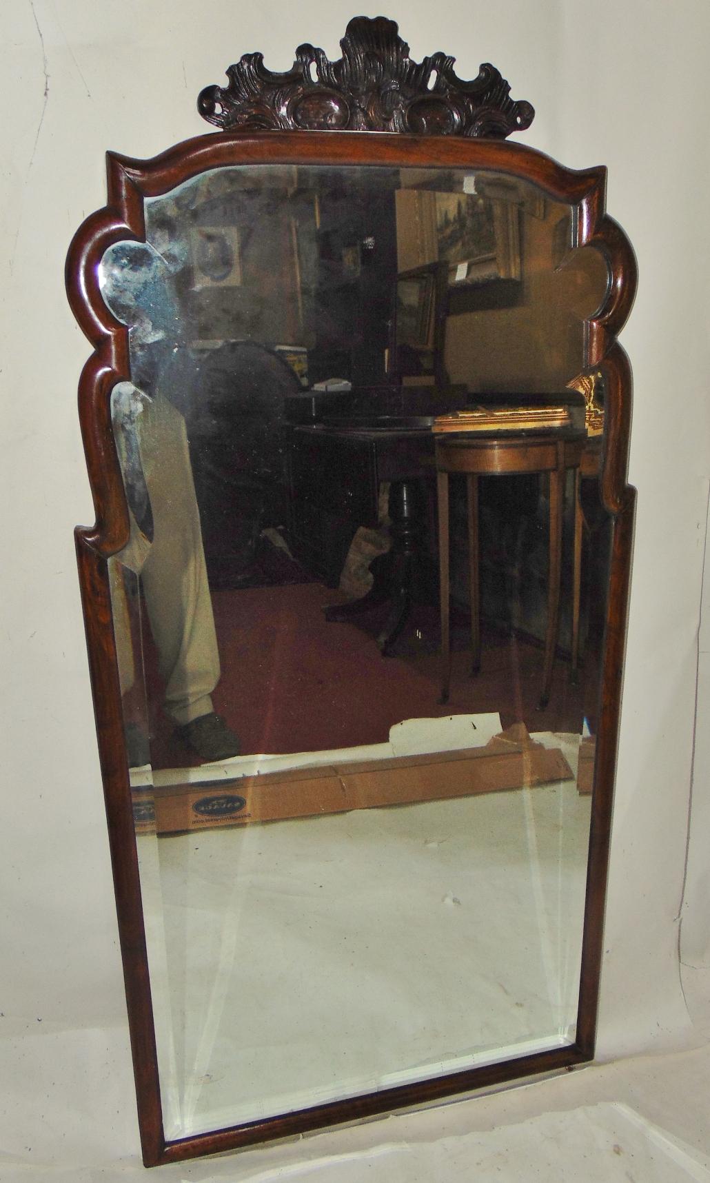 Large Queen Anne Walnut Framed Mirror