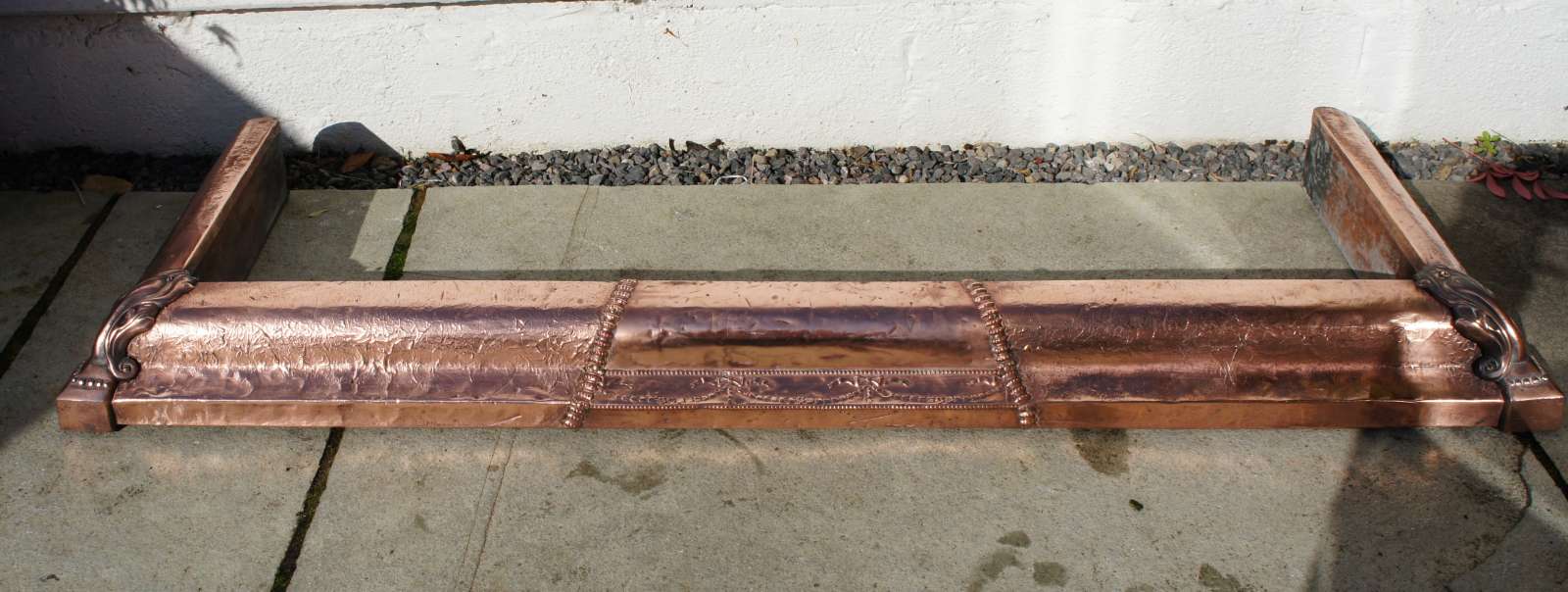 Large Reclaimed Arts & Crafts Decorative Copper Fireplace Fender