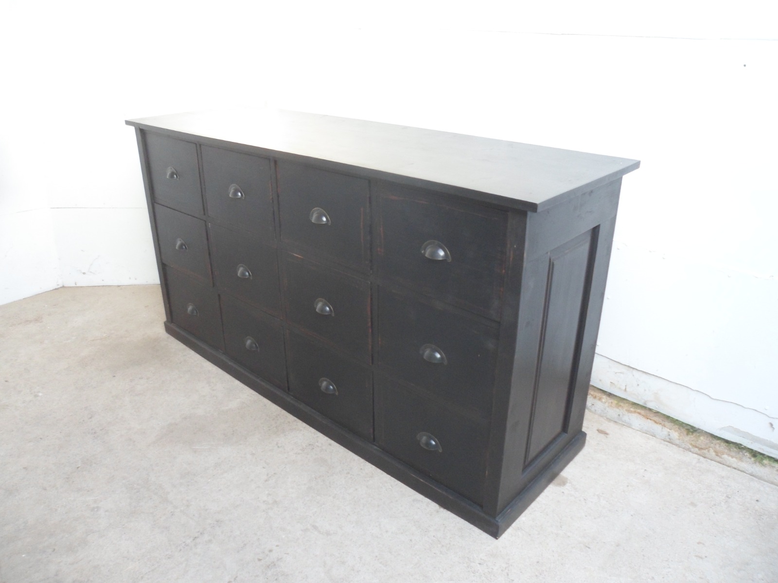 Large Reclaimed Pine Painted Black 12 Drawer Chest of Drawers / Kitchen Island