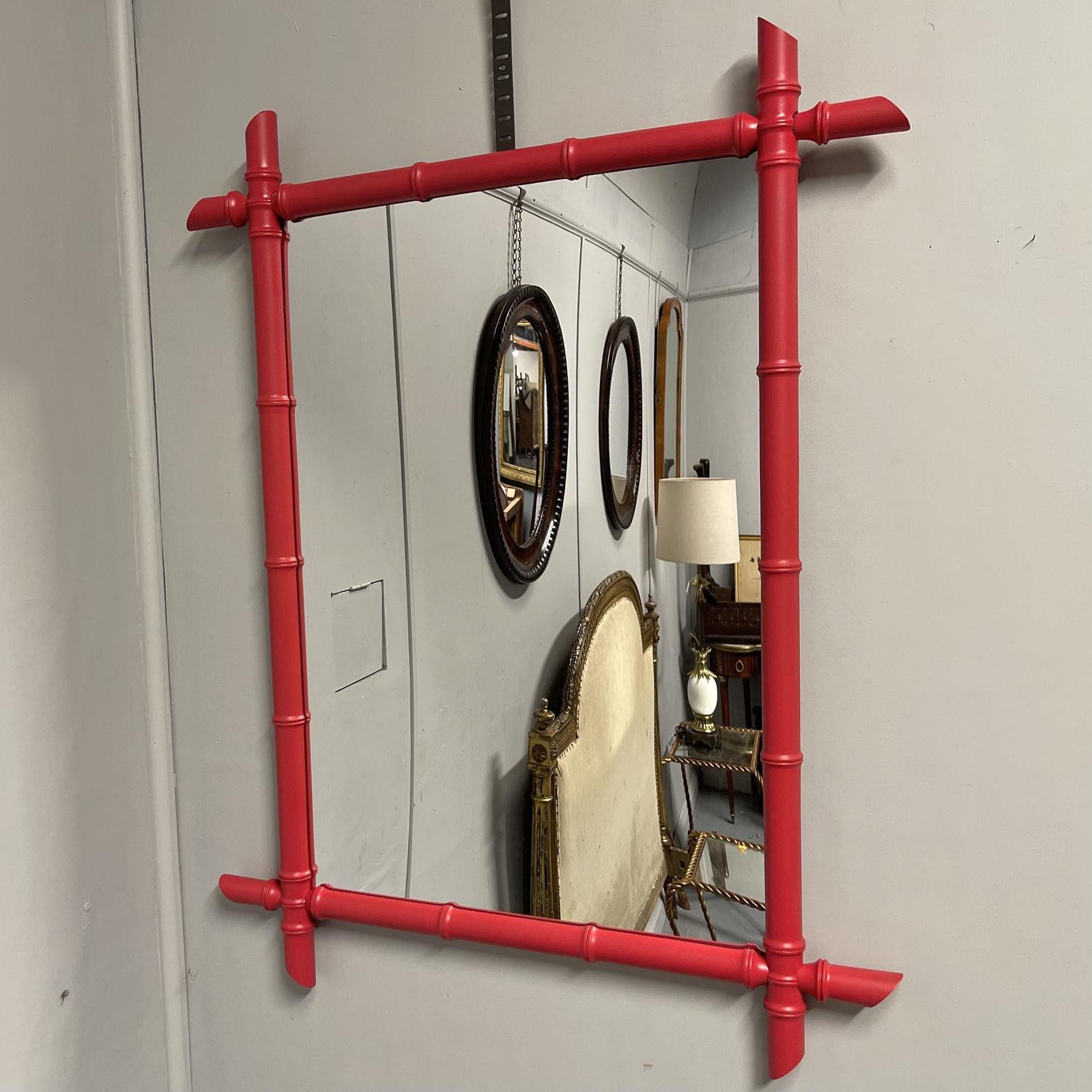 Large Red Lacquered Faux Bamboo Mirror (1 of 6)
