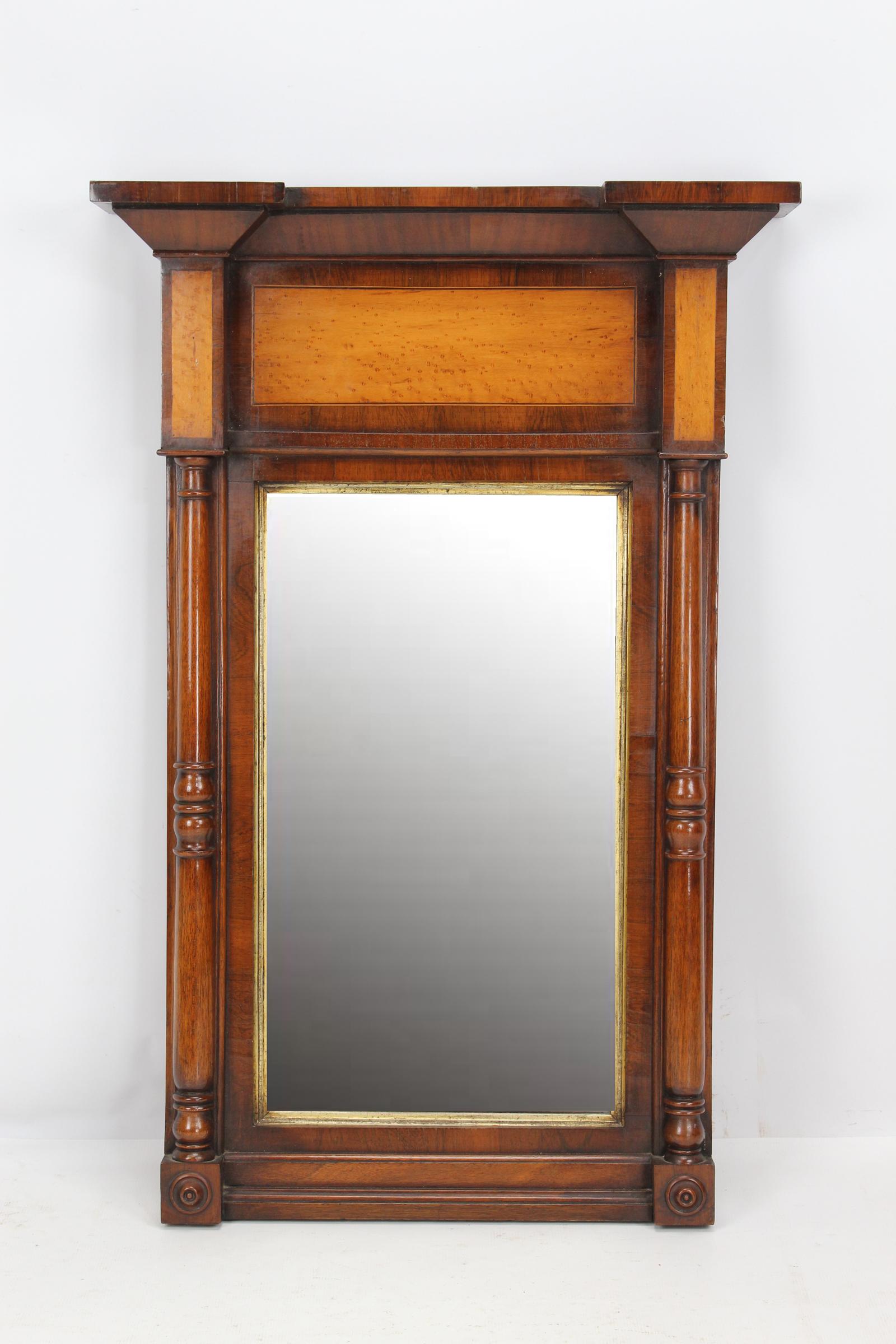 Large Regency Mahogany & Birds Eye Maple Pier Mirror