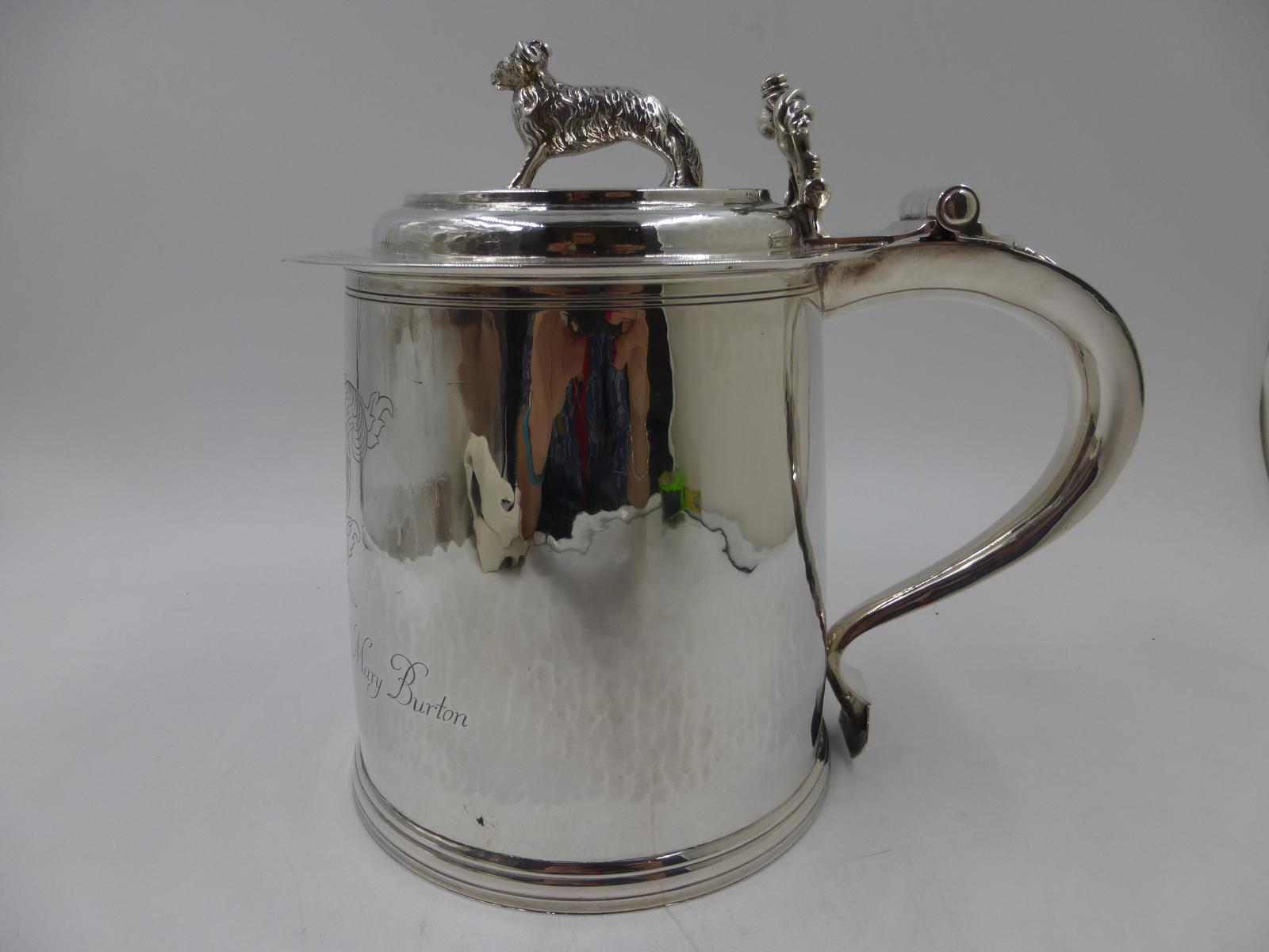 Large Reproduction Charles II Style Silver Lidded Tankard London 1937