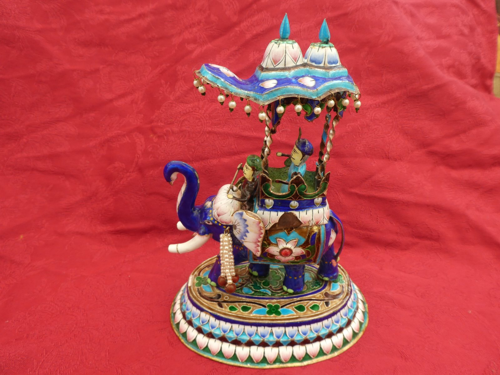 Large, Resplendent Mughal Style Enamelled Silver Indian Elephant with Howdah