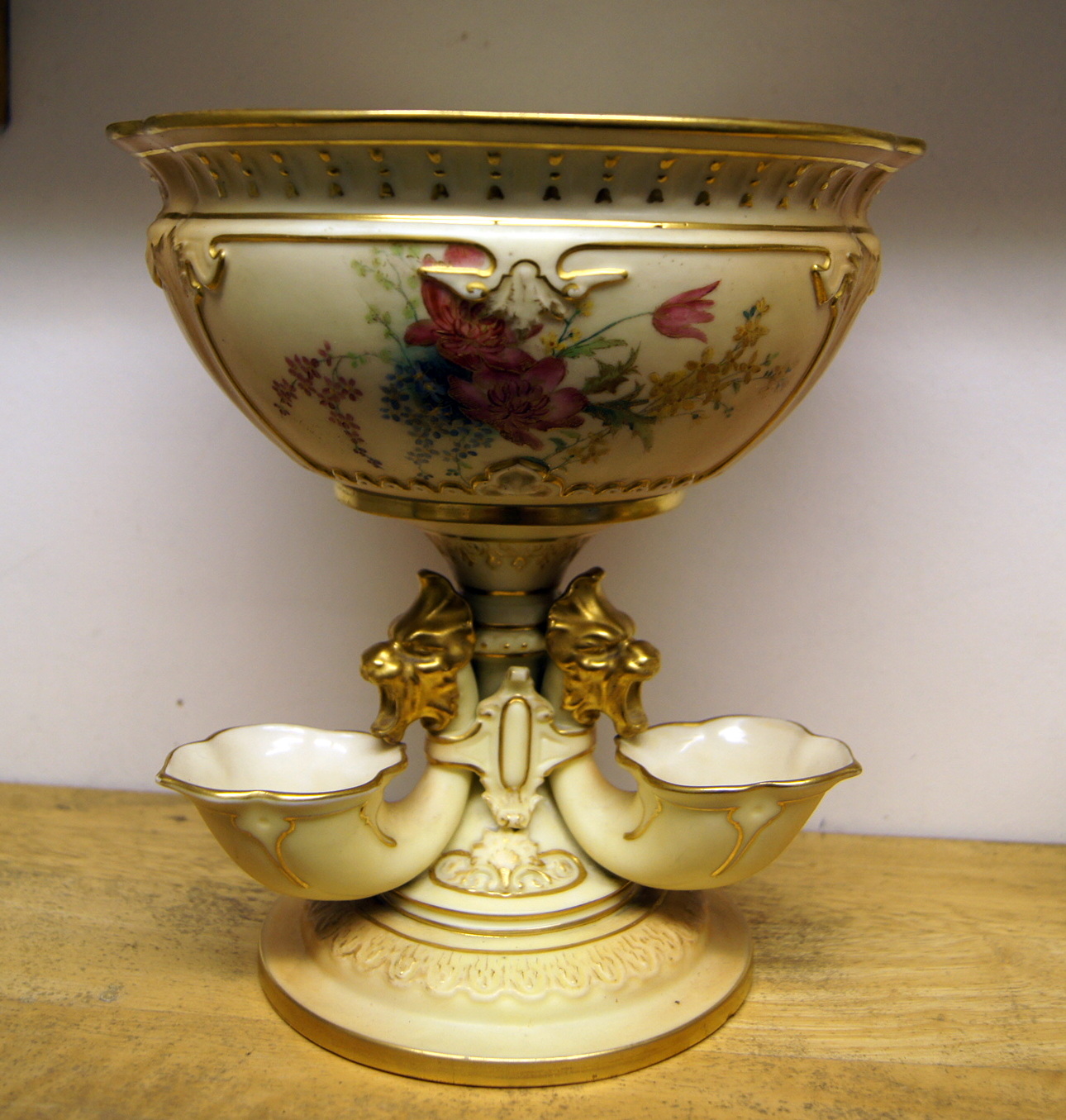 Large Royal Worcester Blush Ivory Centerpiece c.1899