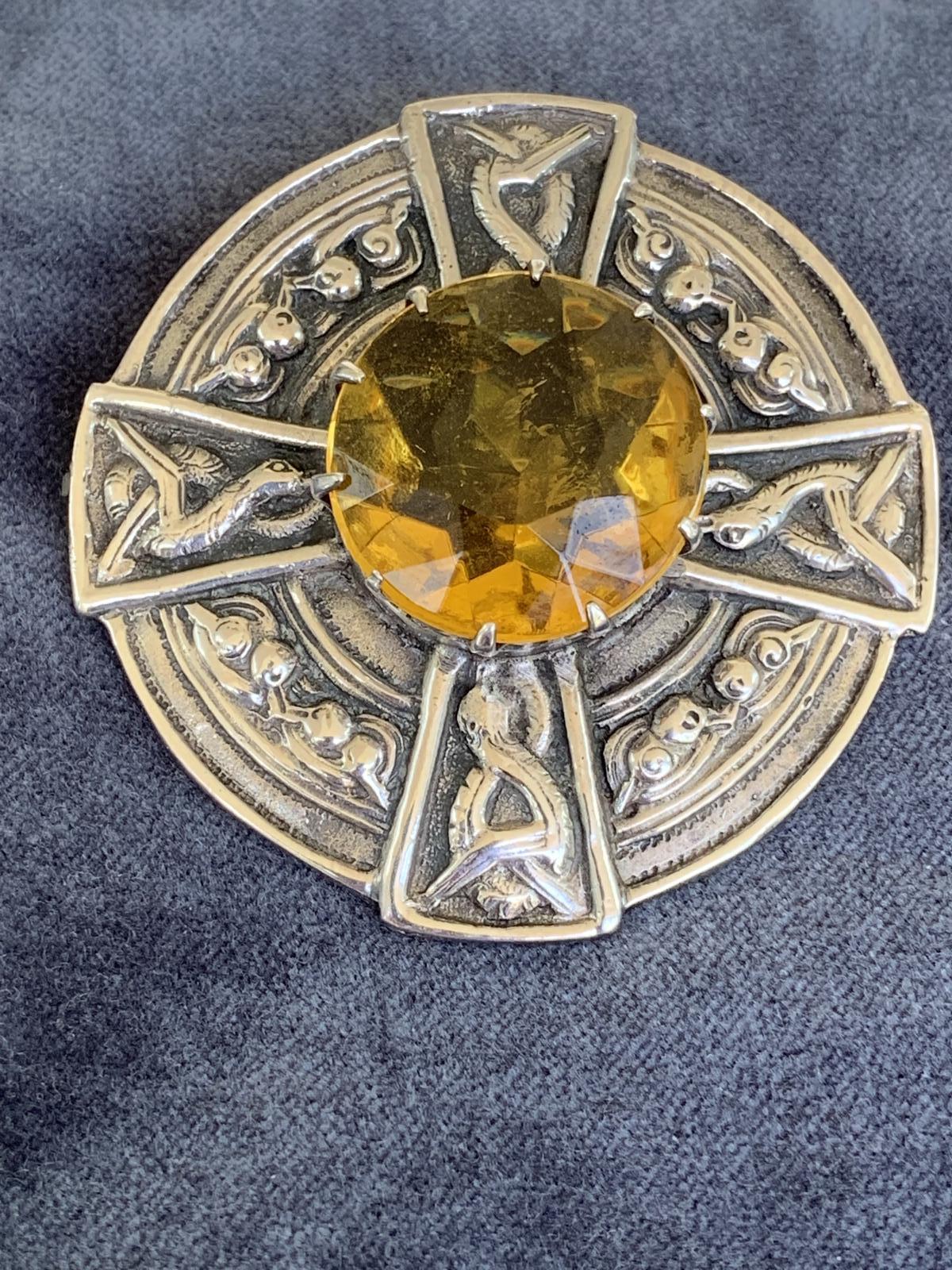 Large Scottish Silver Citrine Celtic Brooch by Robert Allison Glasgow '58