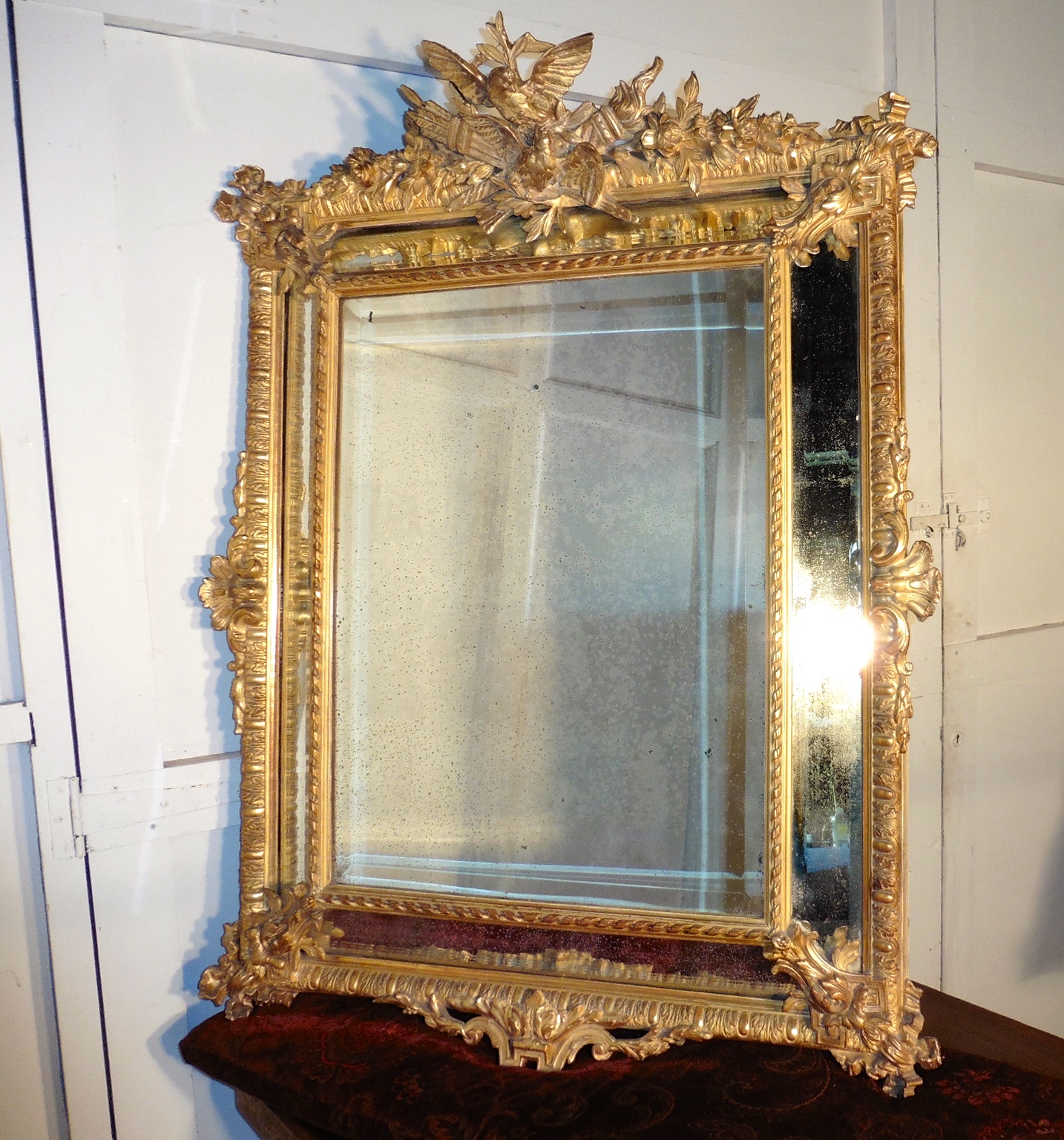 Large Shabby Gilt Napoleon III French Cushion Mirror