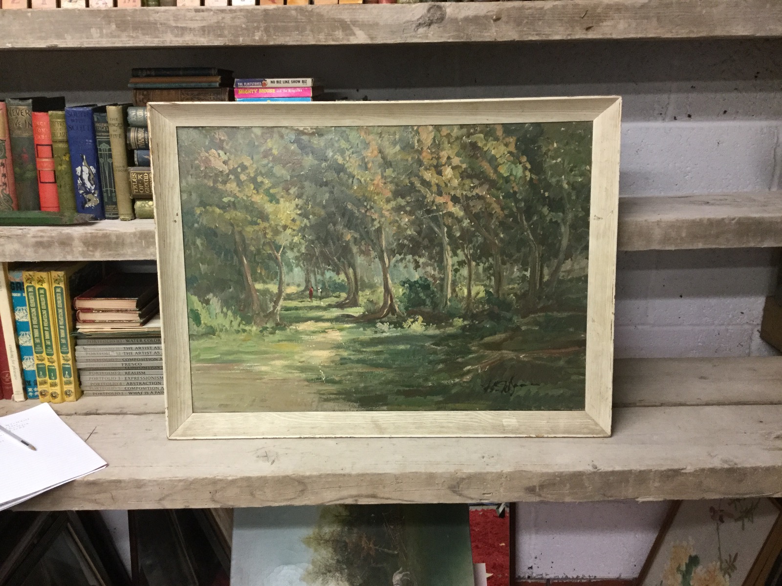 Large Signed Oil on Canvas Painting of Countryside Scene