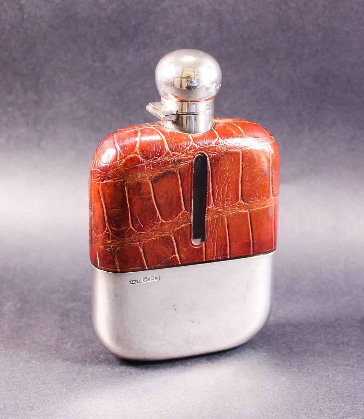 Large Silver and Crocodile Hip Flask, 1923 James Dixon & Sons