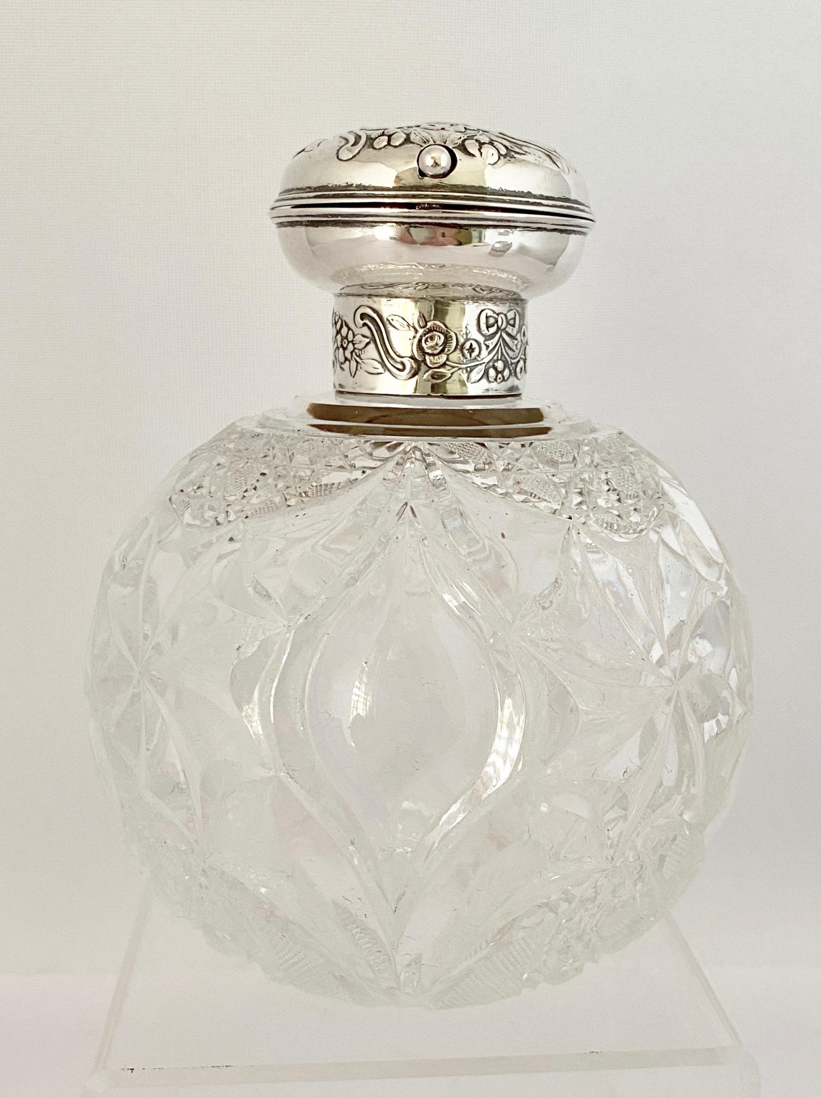 Large Silver Mounted Perfume Scent Bottle - London 1900