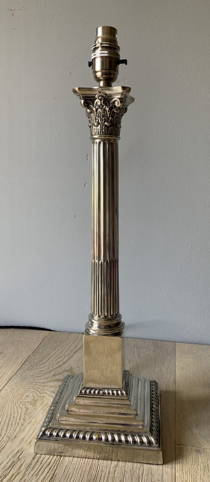 Large Silver Plate Corinthian Column Table Lamp, Rewired & Pat Tested