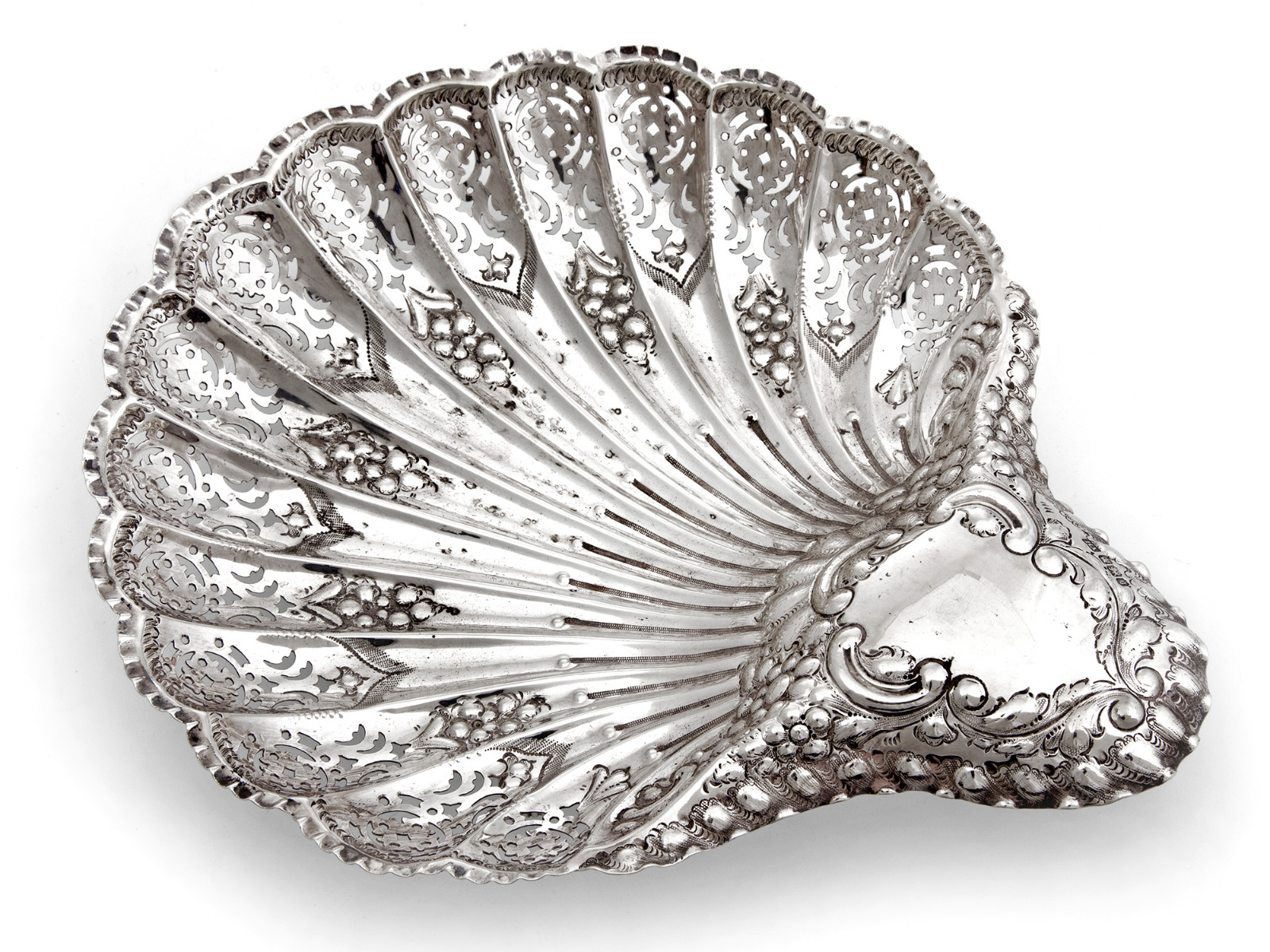 Large Silver Shell Shaped Bon Bon Dish with a Pierced Body and Crimped Edge Border