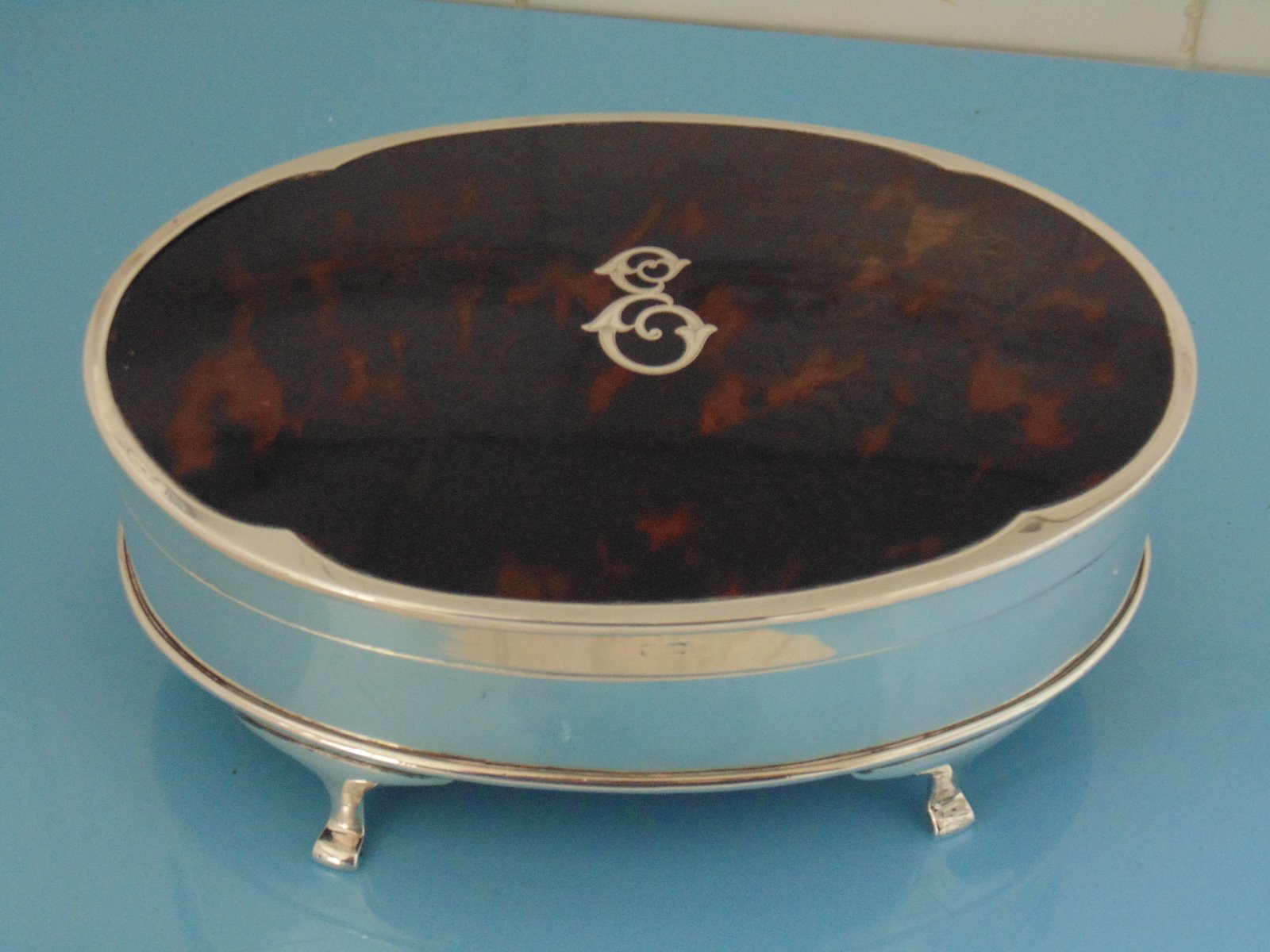 Large Silver & Tortoiseshell Jewel Box with Fitted Interior