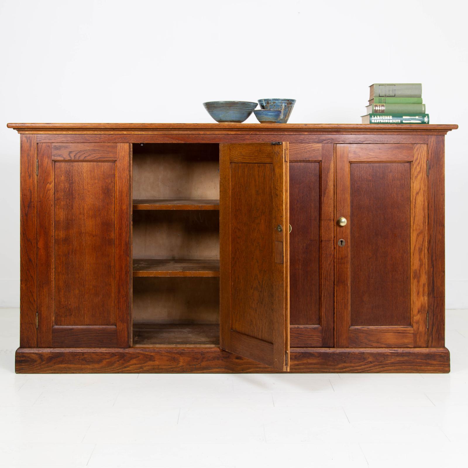 Large Solid English Oak 4 Door School Cabinet c.1920