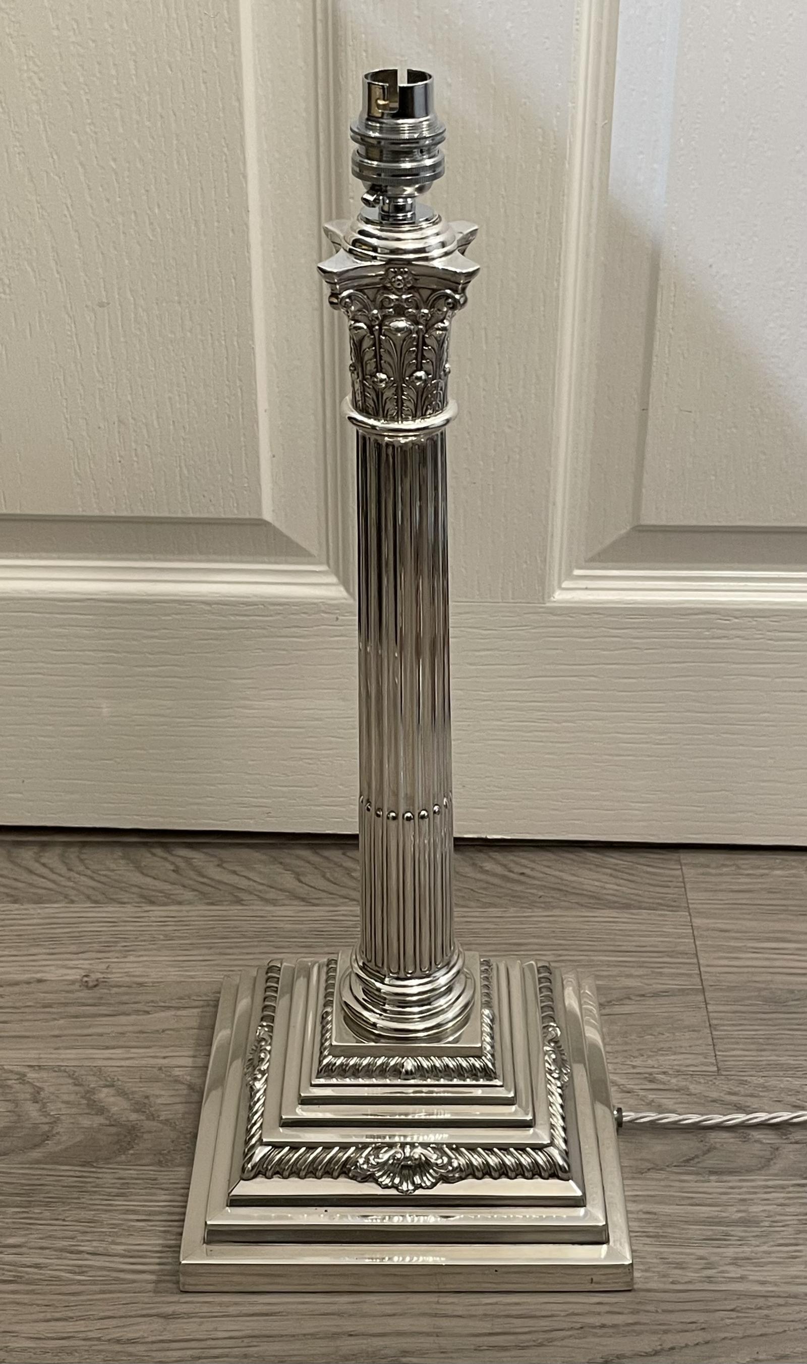 Large Solid Silver Corinthian Column Table Lamp 1900