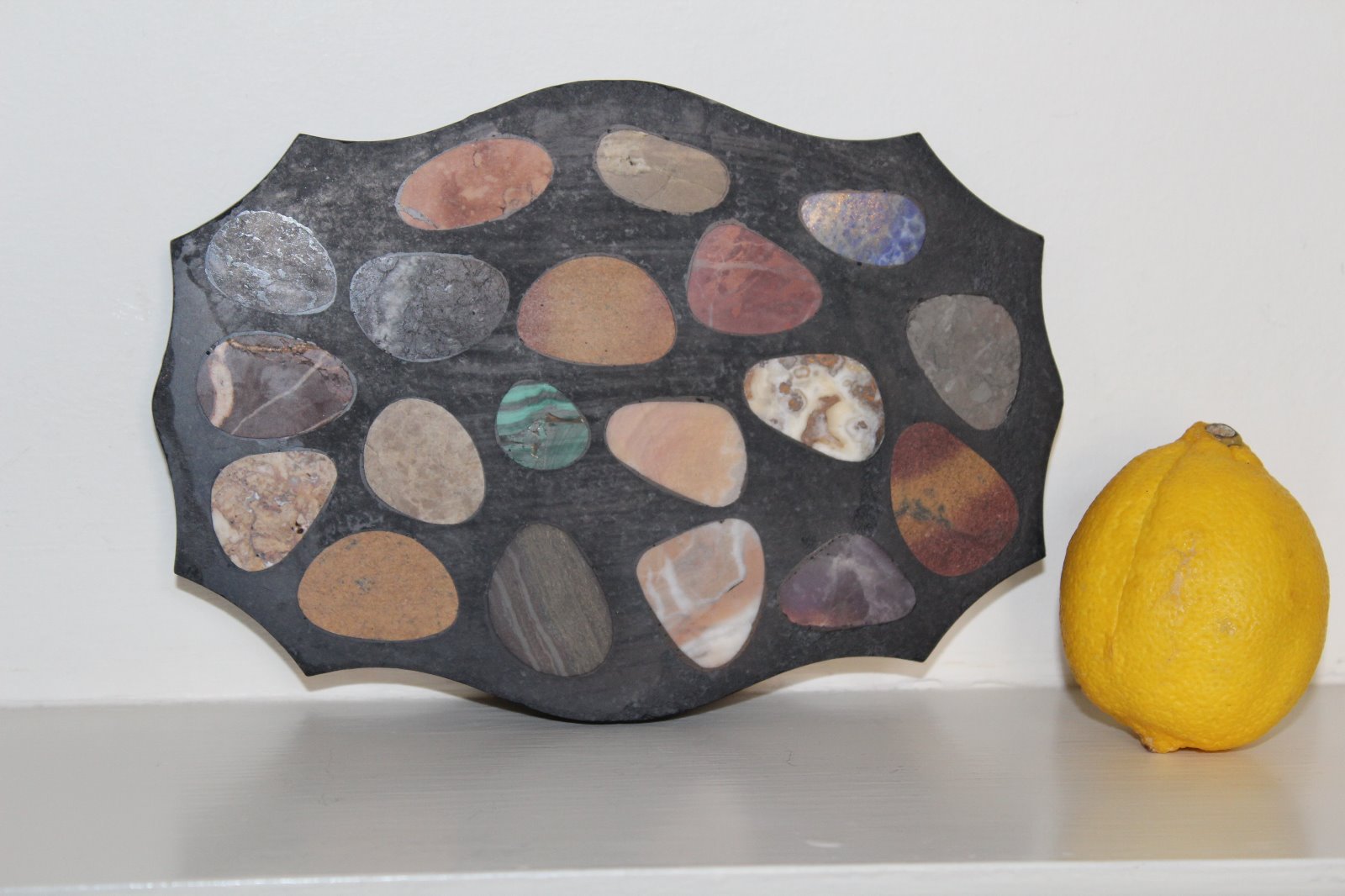 Large Specimen Marble Desk Piece Paperweight Inlaid with Various Marbles