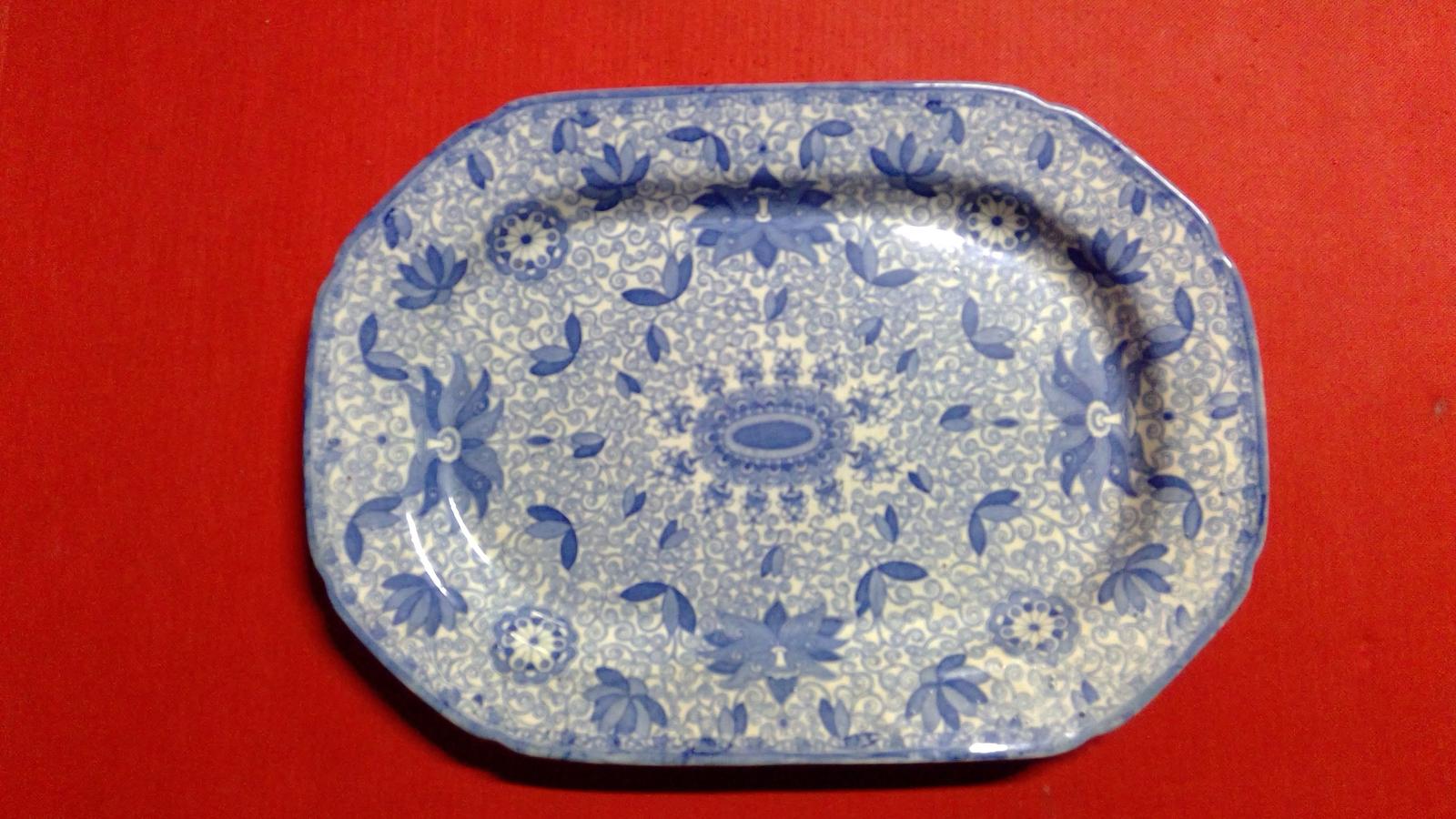 Large Staffordshire Pearlware Meat Dish Asiatic Lotus