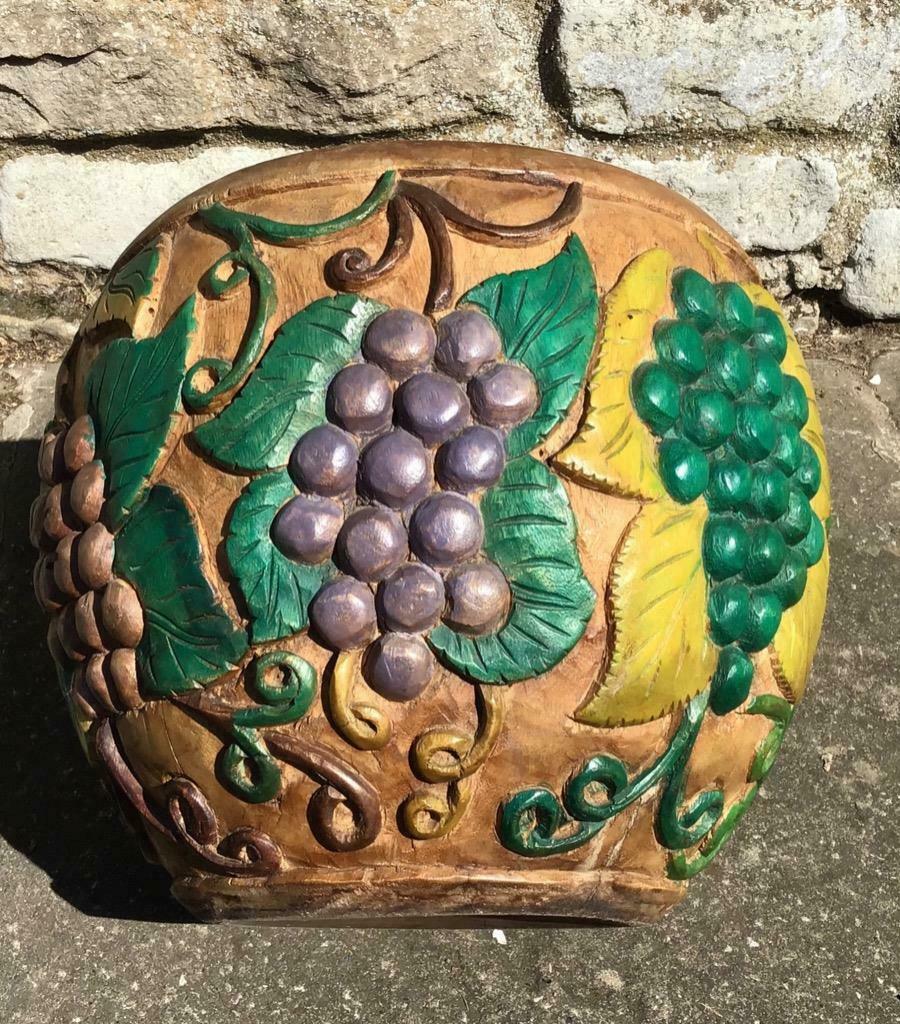 Large Standing Hand Carved Wooden Bowl Coloured All Over Fruit Designs