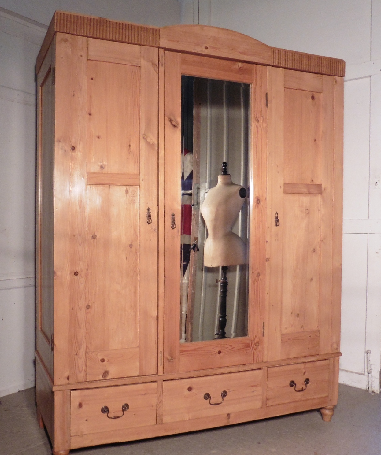 Large Stripped Pine Wardrobe Compactum, 19th Century Breakdown c.1880