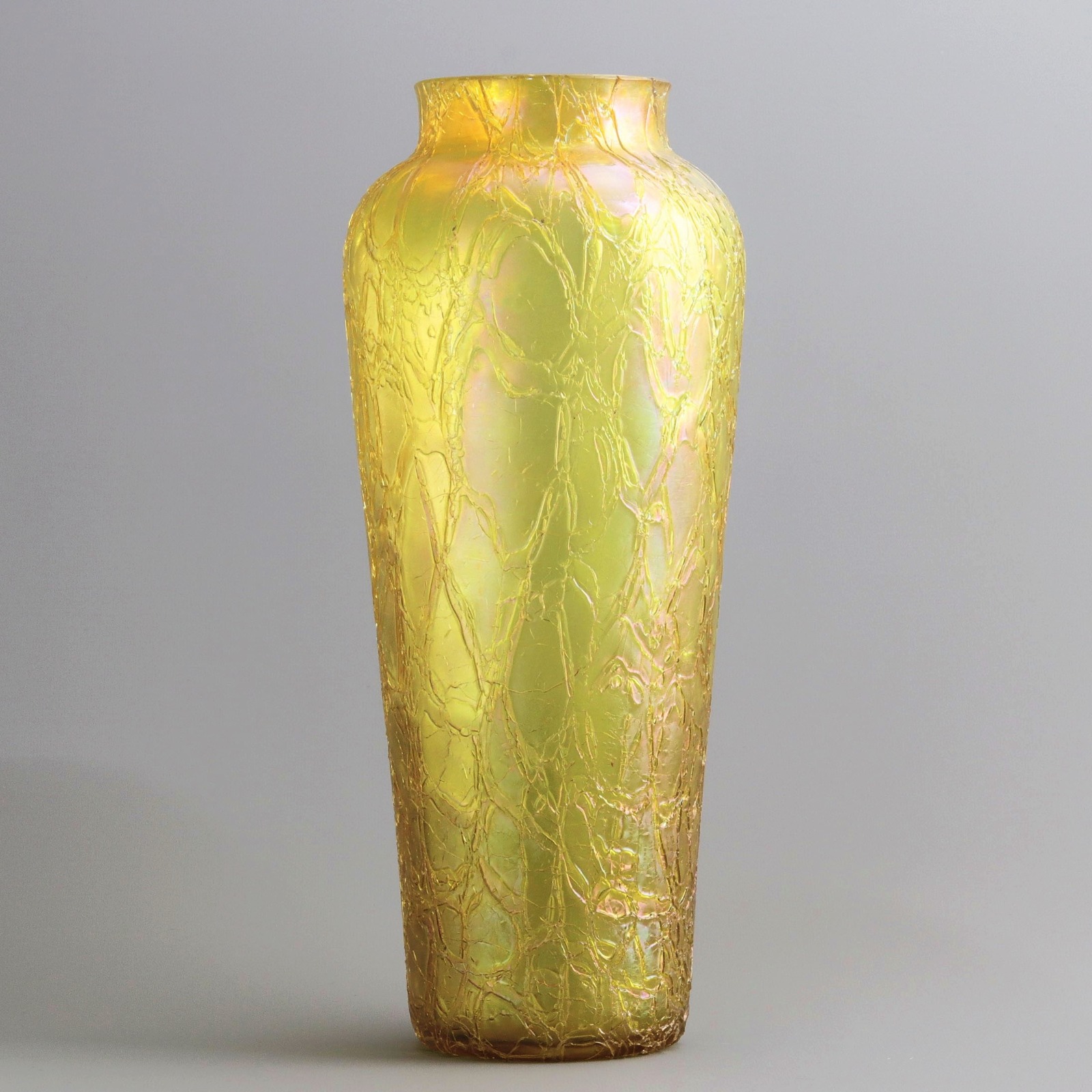 Large Tall Kralik Iridescent Crackle Glass Art Nouveau Vase C.1910