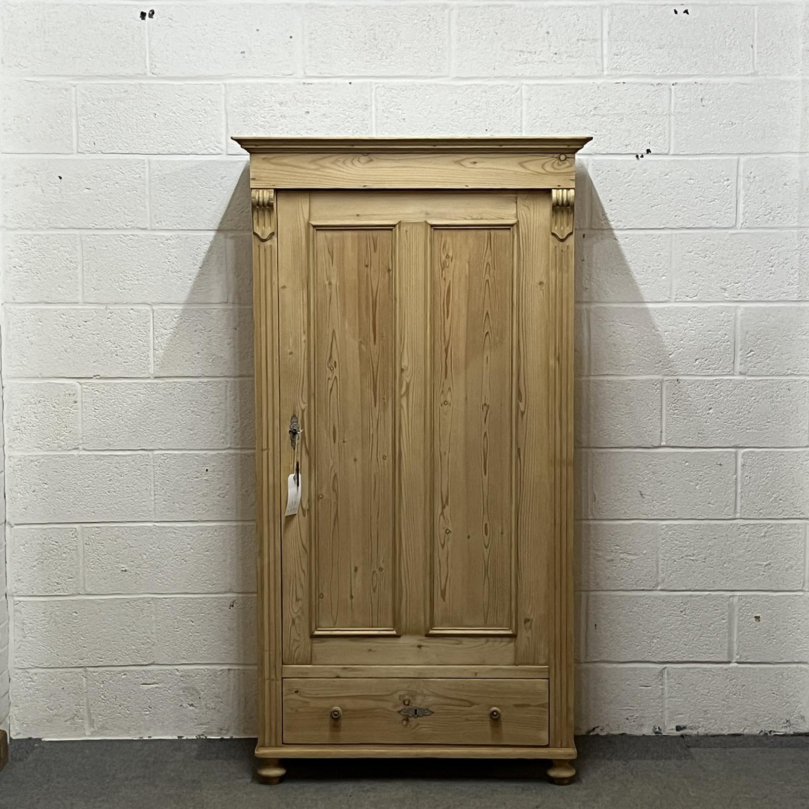 Large Tall Slim Antique Pine Cupboard with Bottom Drawer (1 of 8)