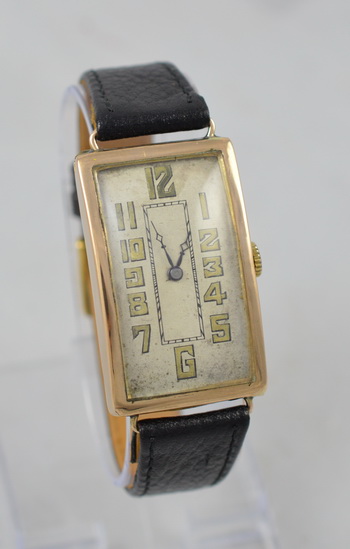 Large 'Tank' 14K Gold Wristwatch c.1935