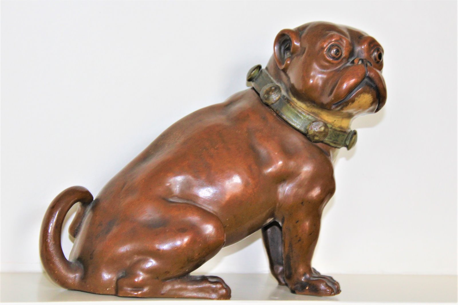 Large Terracotta Pug Dog Tobacco Container by Bernard Bloch Austria c.1900