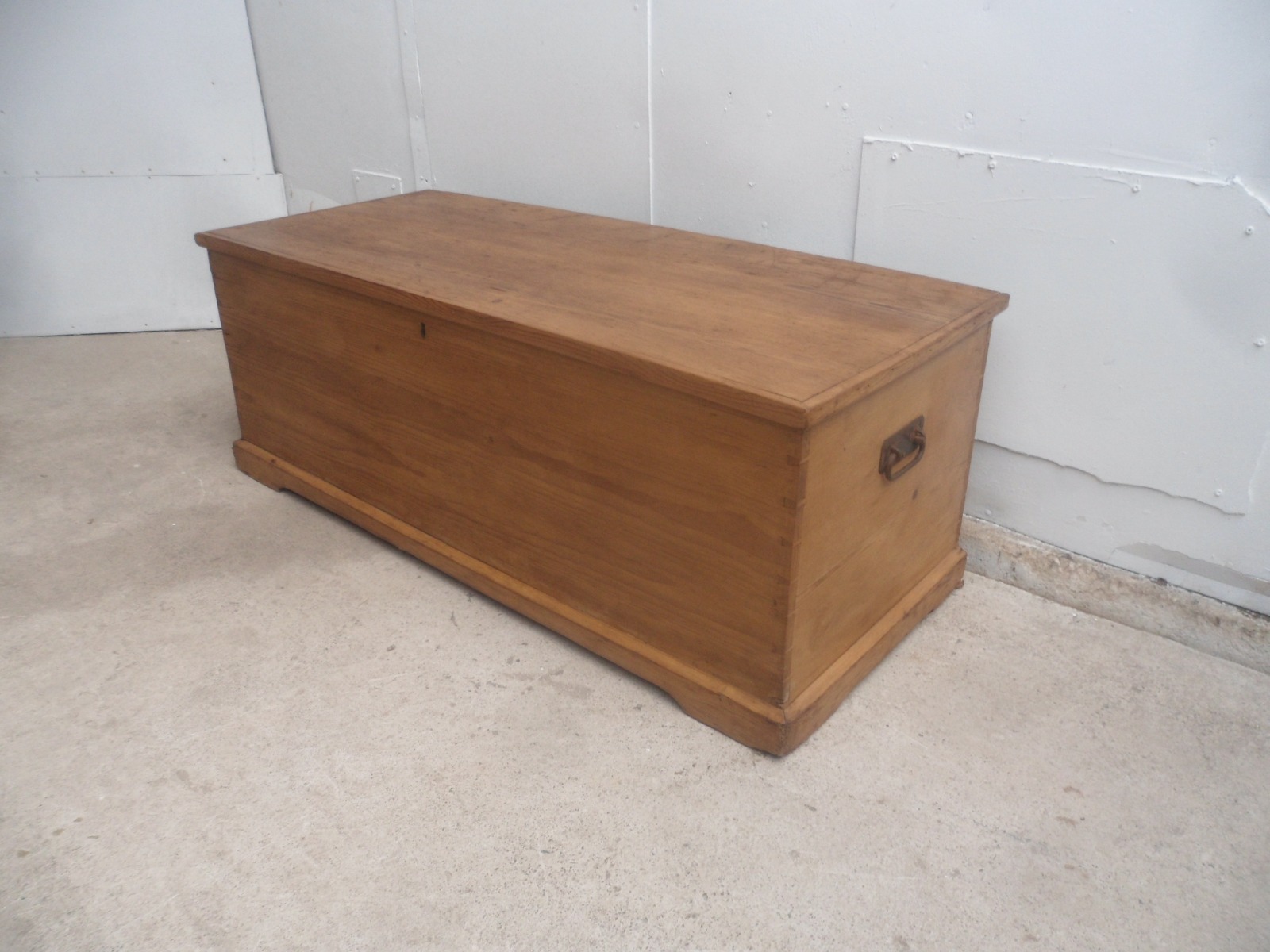 Large Thin Antique Pine Victorian Coffer Blanket Box / Coffee Table / TV Stand