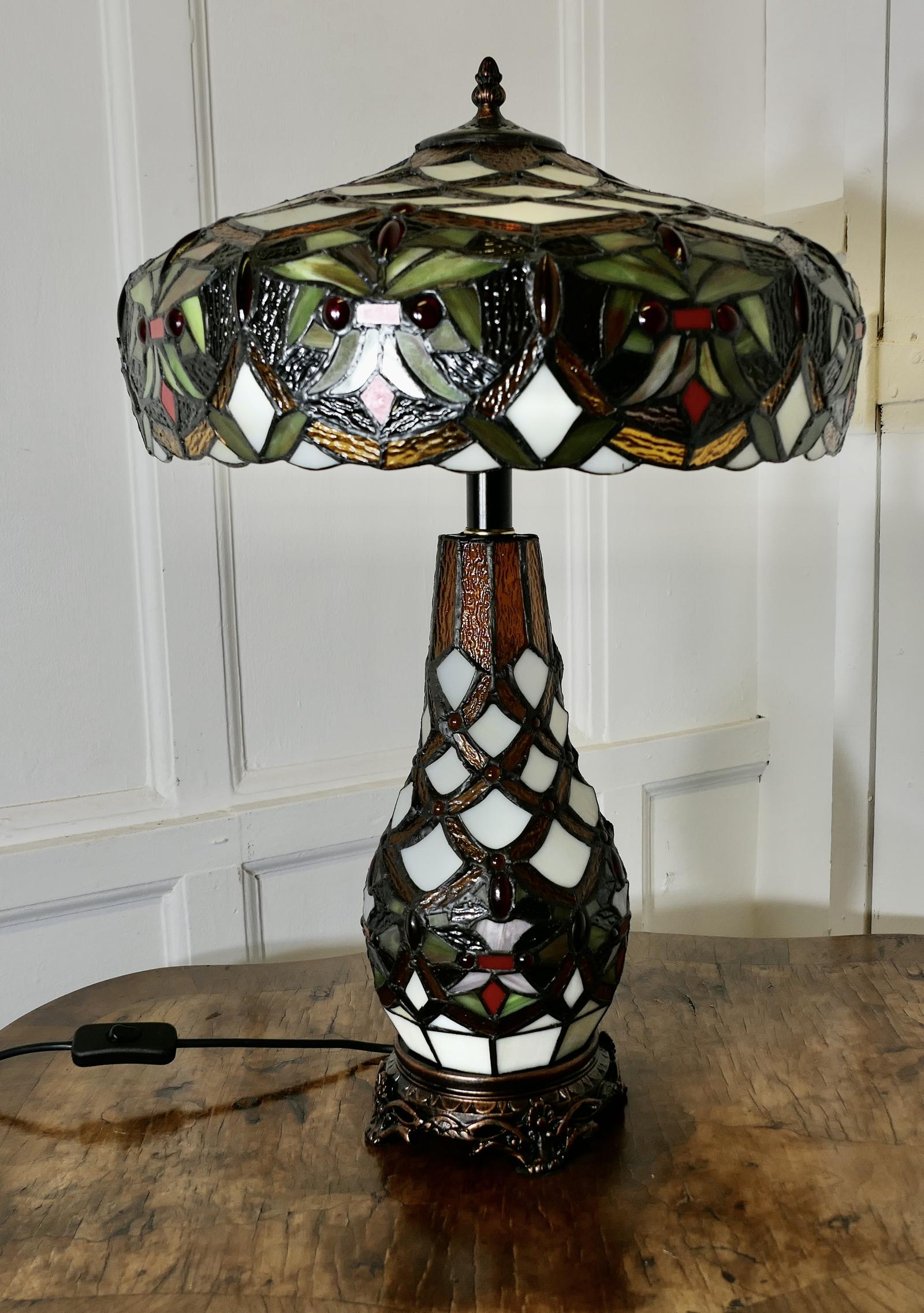 Large Tiffany Style Stained Glass Table Lamp & Shade