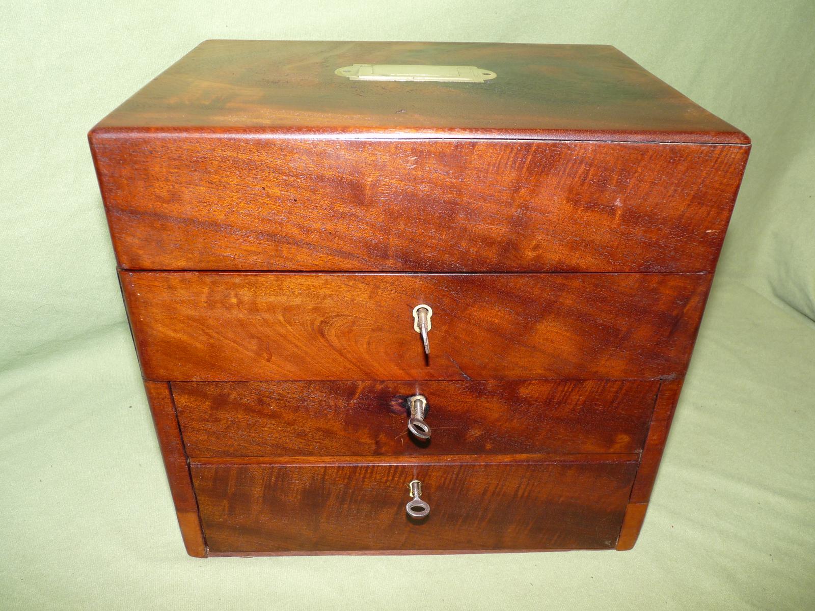 Large Triple Section Solid Mahogany Jewellery / Collectors Box c.1860