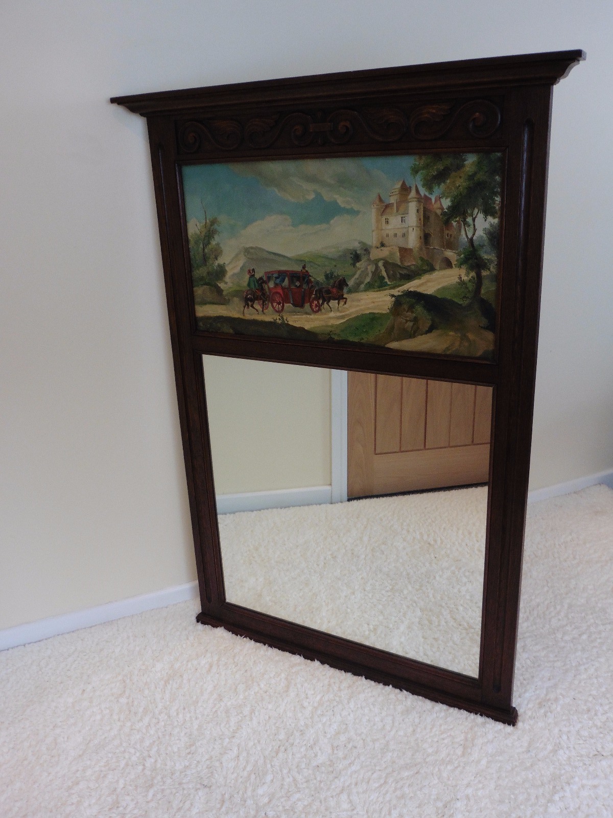 Large Trumeau Mirror Oak French Chateau Oil Painting