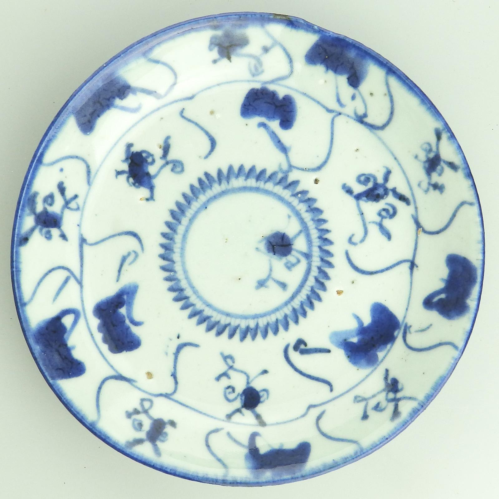 Large Uneven Ancient / Antique Oriental Porcelain Chinese Saucer Dish Signed