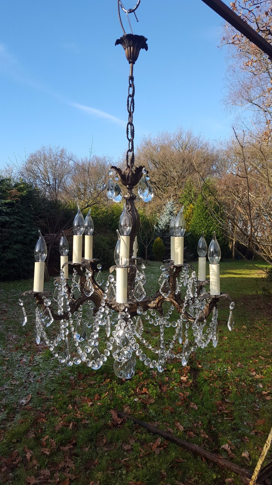 Large Unusual Vintage French 12 Light Bronze Chandelier