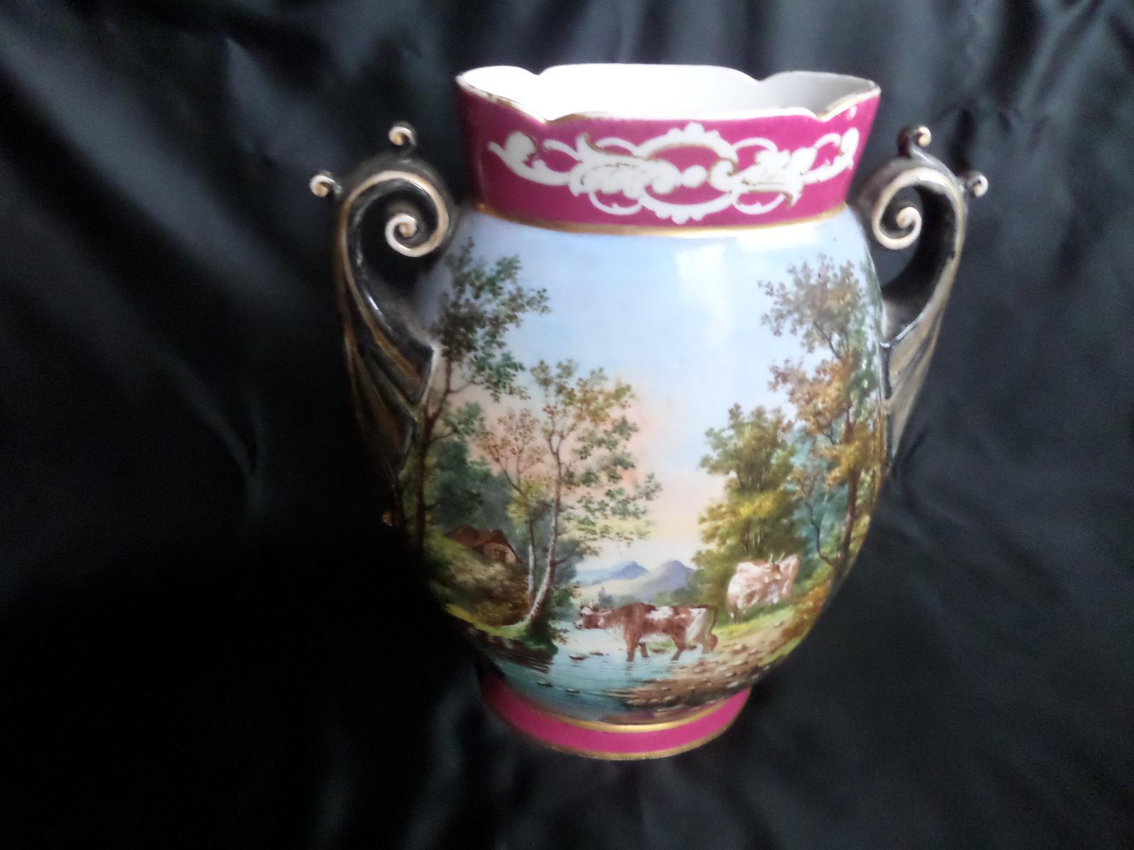 Large Vase Depicting Pastoral Scene with Cattle etc