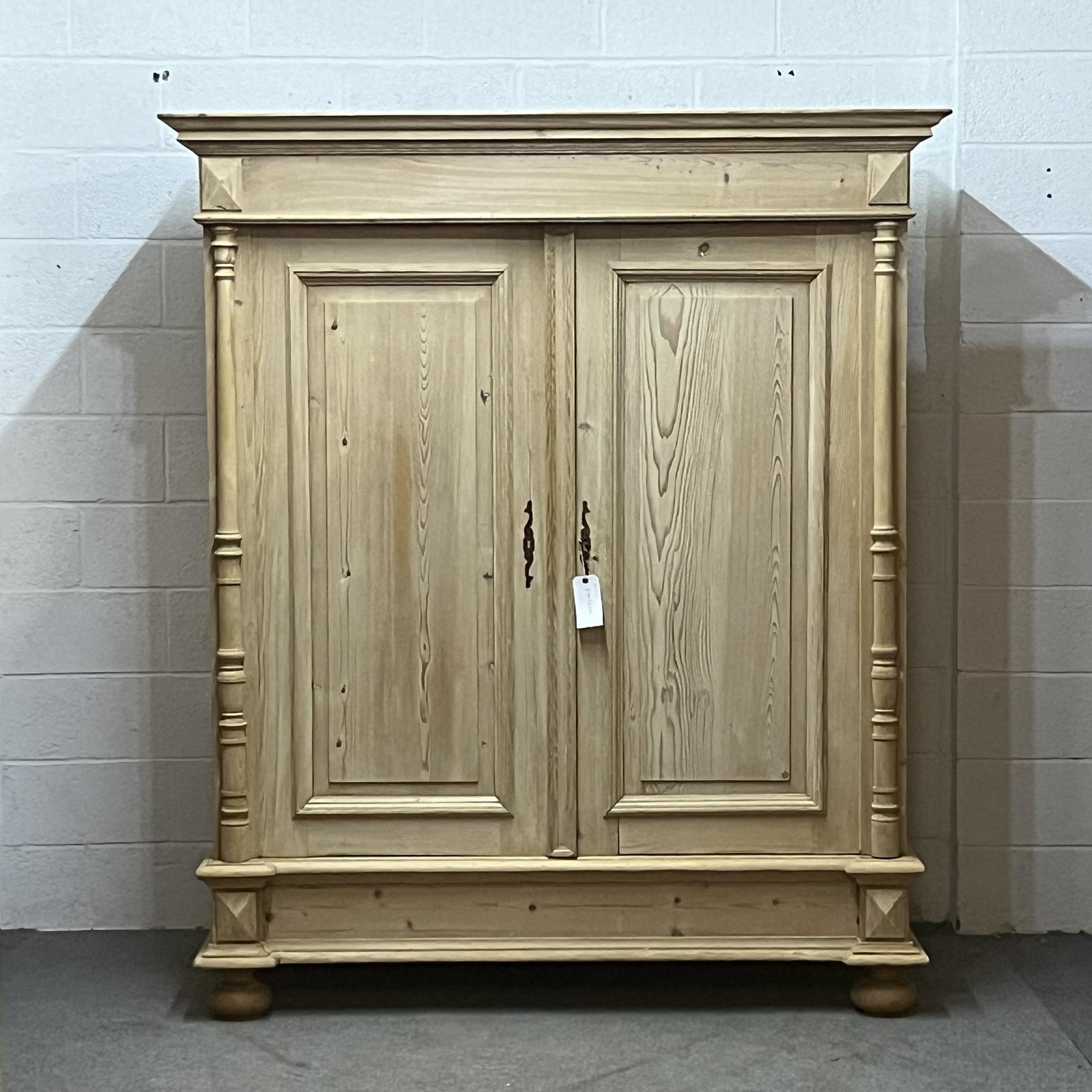 Large Very Deep Antique Pine Double Wardrobe - Dismantles