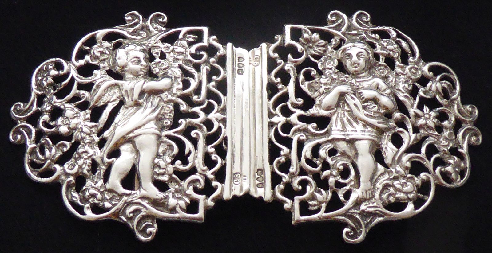 Large Victorian 1891 Hallmarked Silver Nurses Belt Buckle Cherubs Maternity