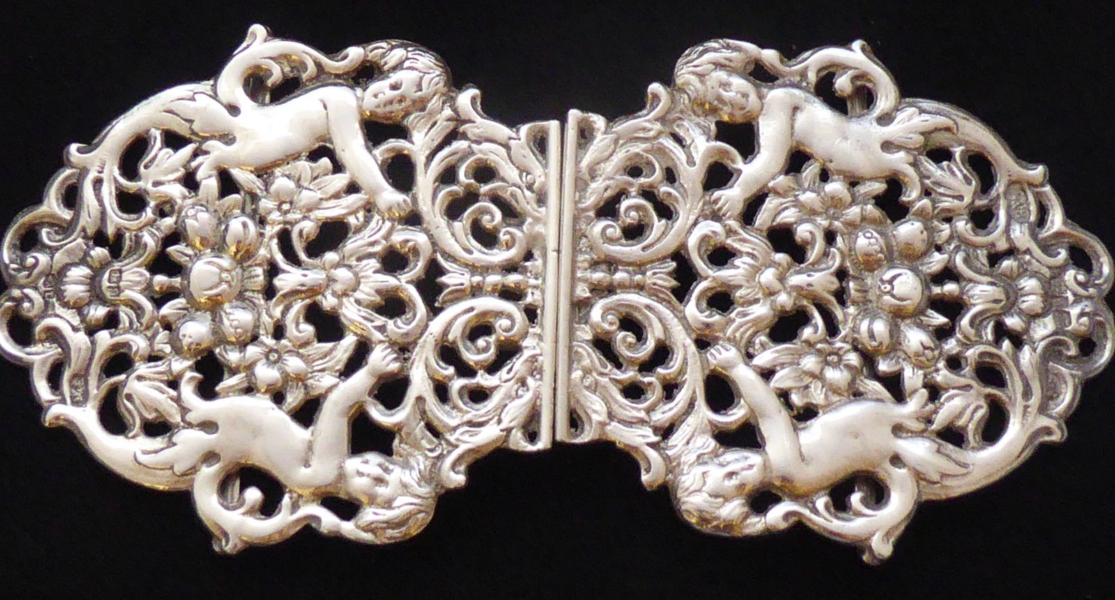 Large Victorian 1892 Hallmarked Silver Nurses Belt Buckle Cherubs Maternity