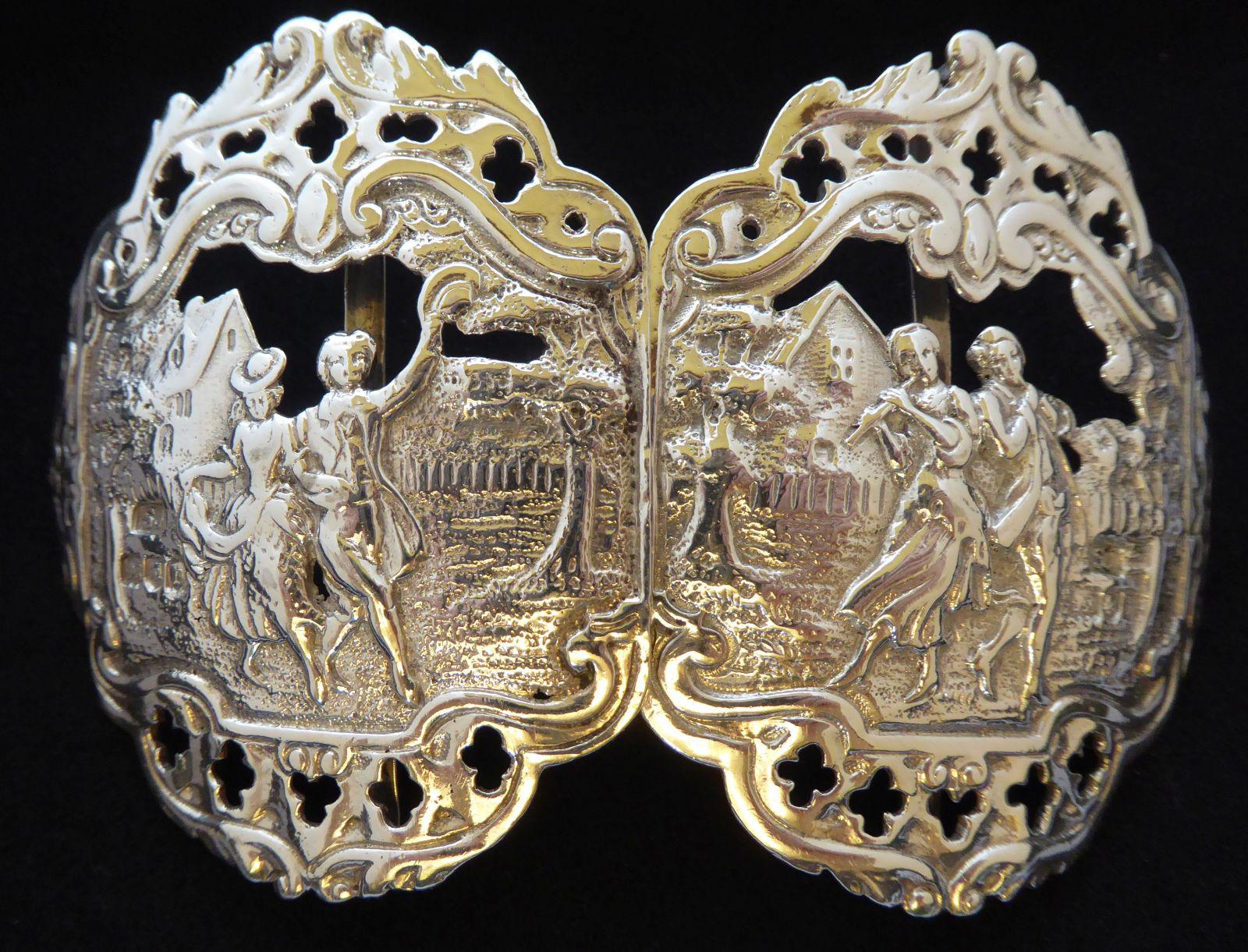 Large Victorian 1897 Hallmarked Solid Silver Nurses Belt Buckle Music & Dancing Design