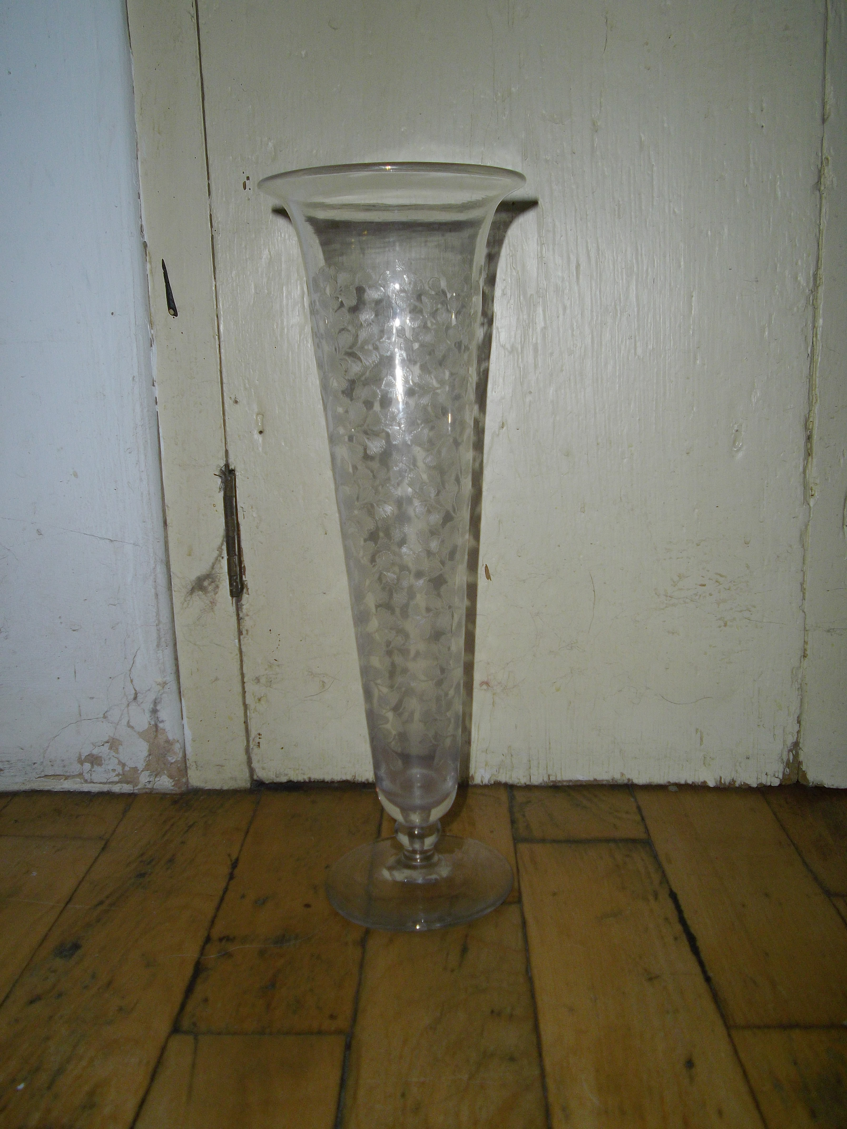 Large Victorian Acid Etched Fern Honesty Pattern Glass Flute Vase-c.1890/1900