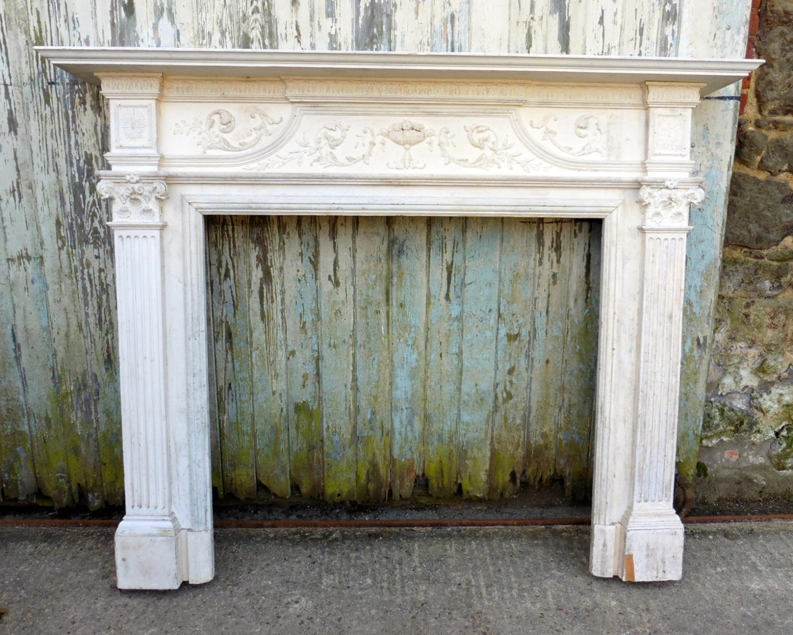 Large Victorian Adams Style Painted Pine Fireplace.
