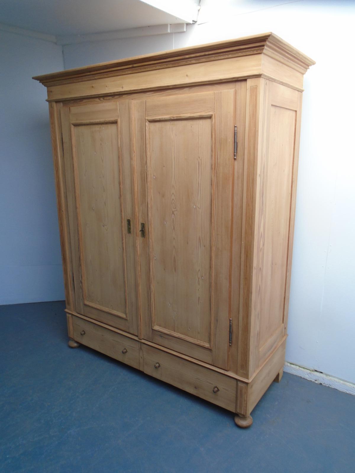 Large Victorian Antique Pine 2 Door Knockdown Wardrobe to wax / paint