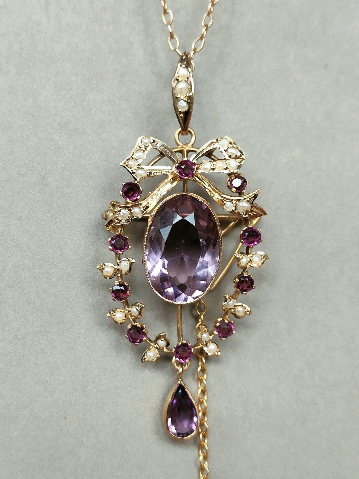 Large Victorian Art Nouveau 9ct Gold Pearl Amethyst Pendant / Brooch (1 of 10)
